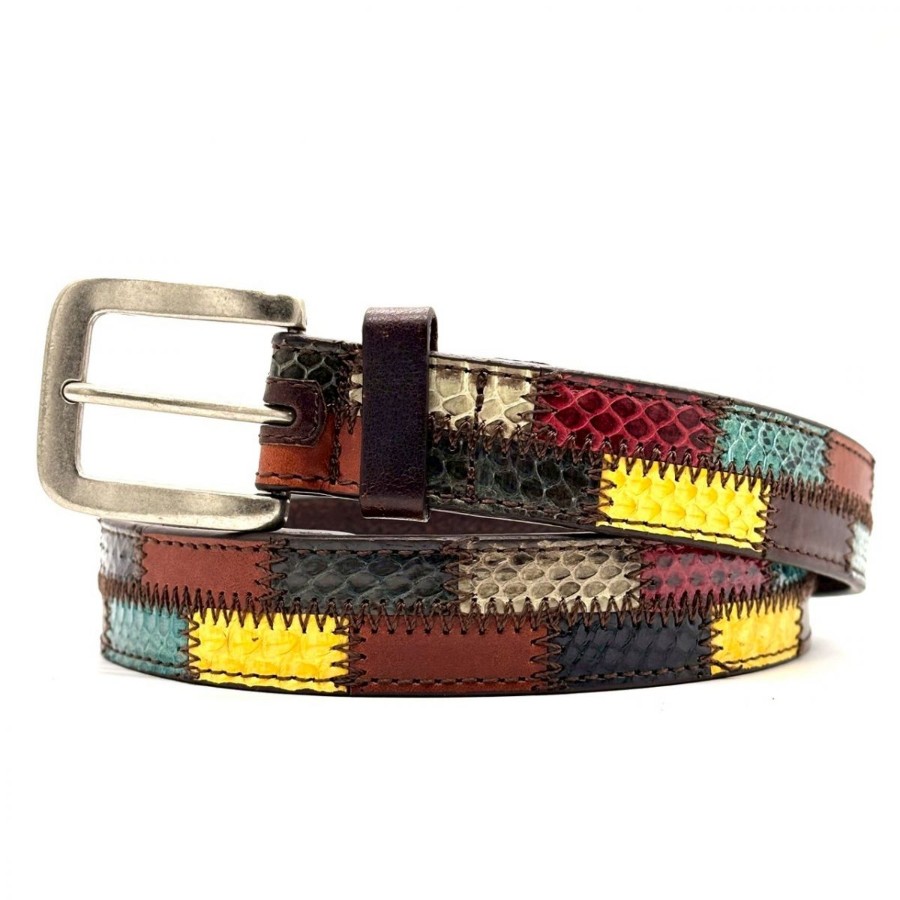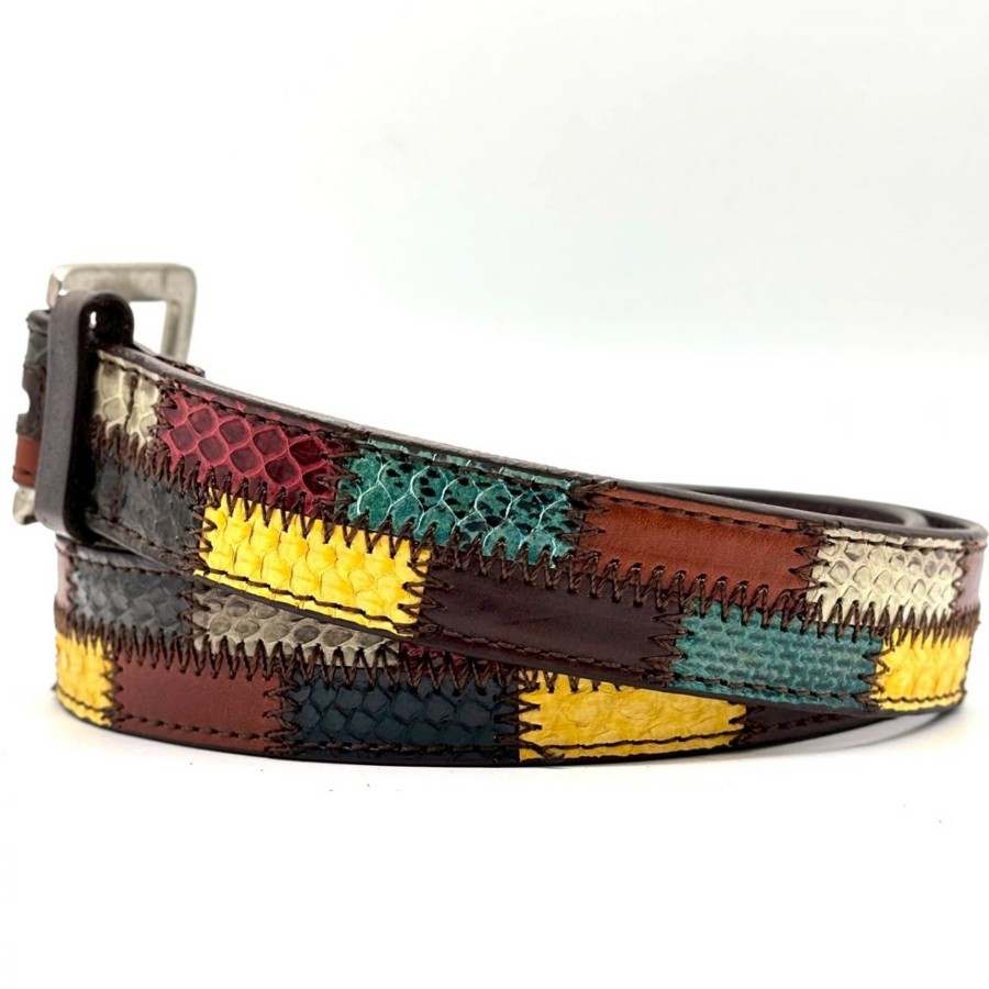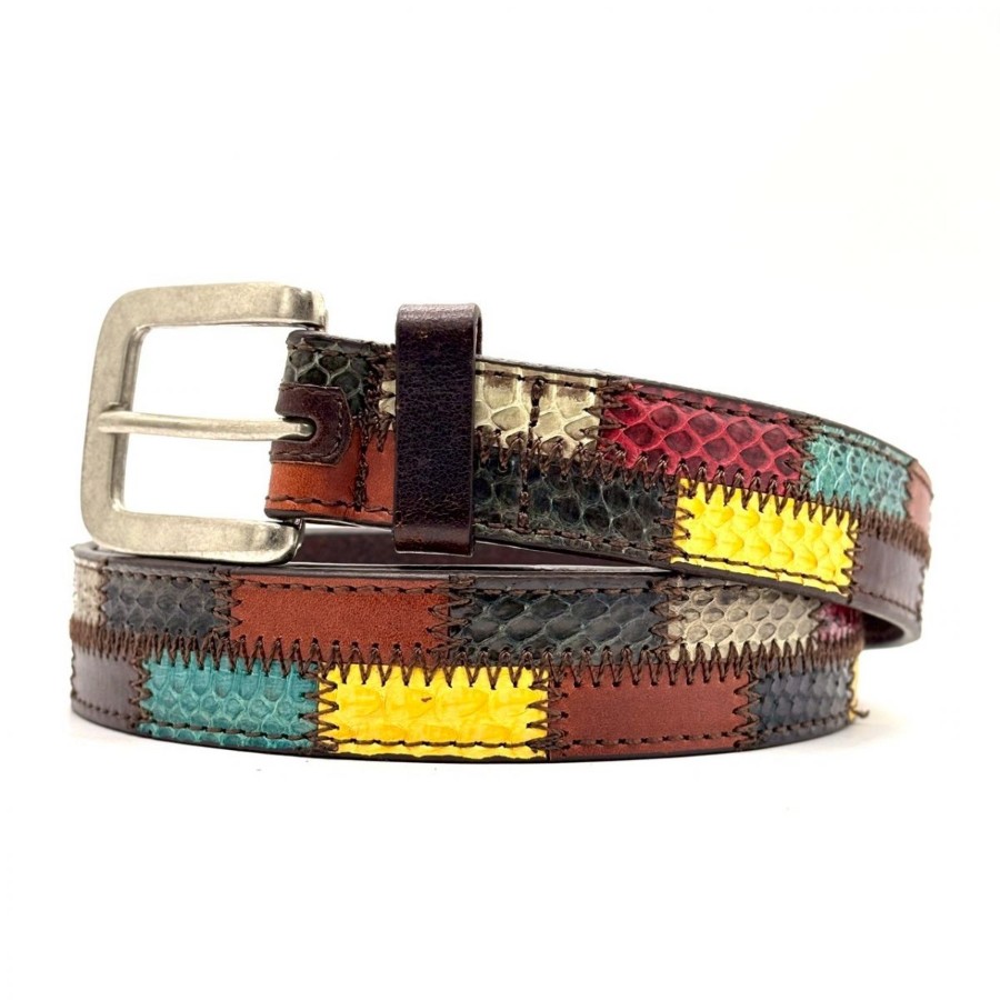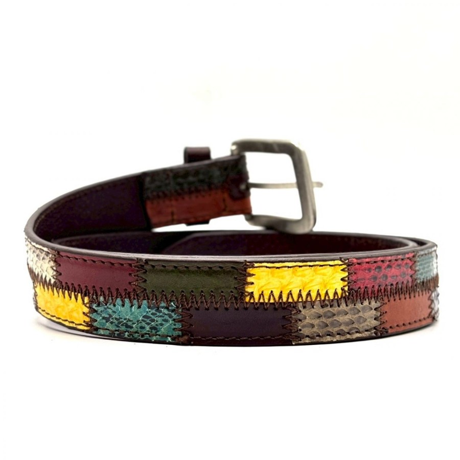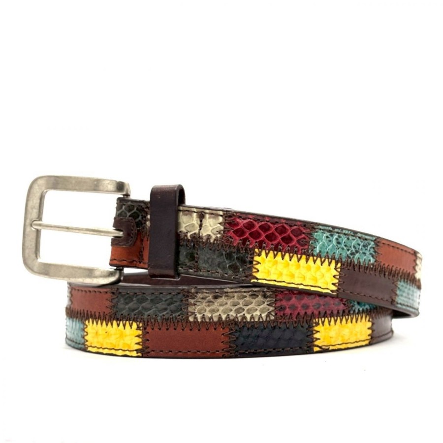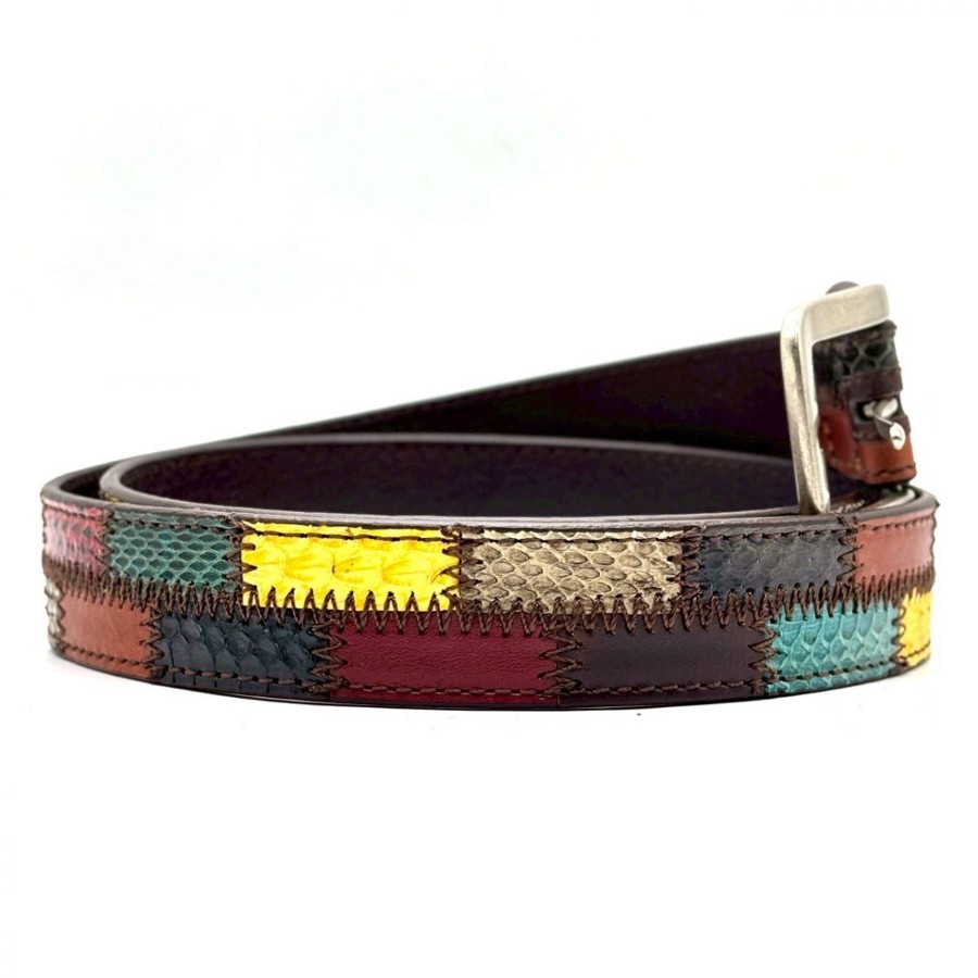 glamb Gaudy belt patchwork leather belt with stitching, multicolor