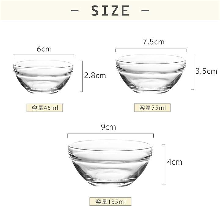 「商品詳細」 材質:ガラス サイズ3種(直径6cm、直径7.5cm、直径9cm) スタイル2種(5個セット、10個セット)