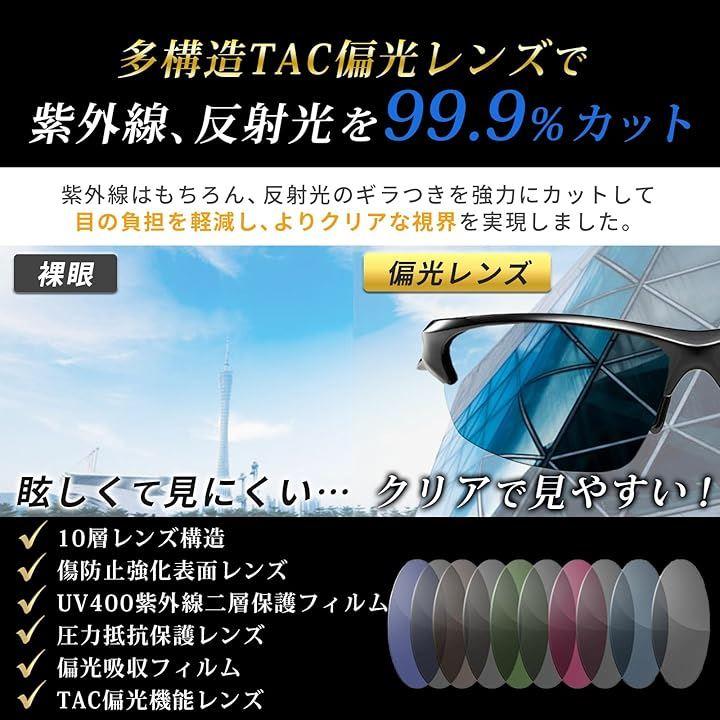 「超偏光。10層レンズ構造・TAC偏光レンズ」紫外線、乱反射を99.9%カット。