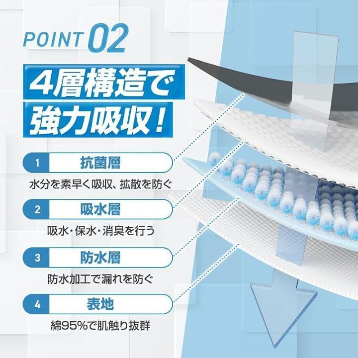 4層構造で強力吸水。抗菌層、吸水層、防水層、表地で安心。