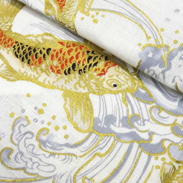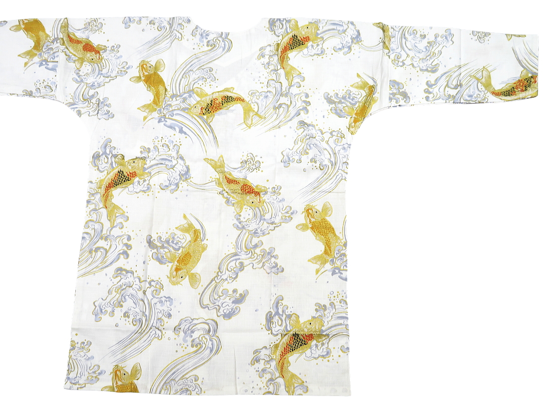 Gold Carp in Flowing Water (White) Extra Large (LL) Adult Koiguchi Shirt (Sold Separately)