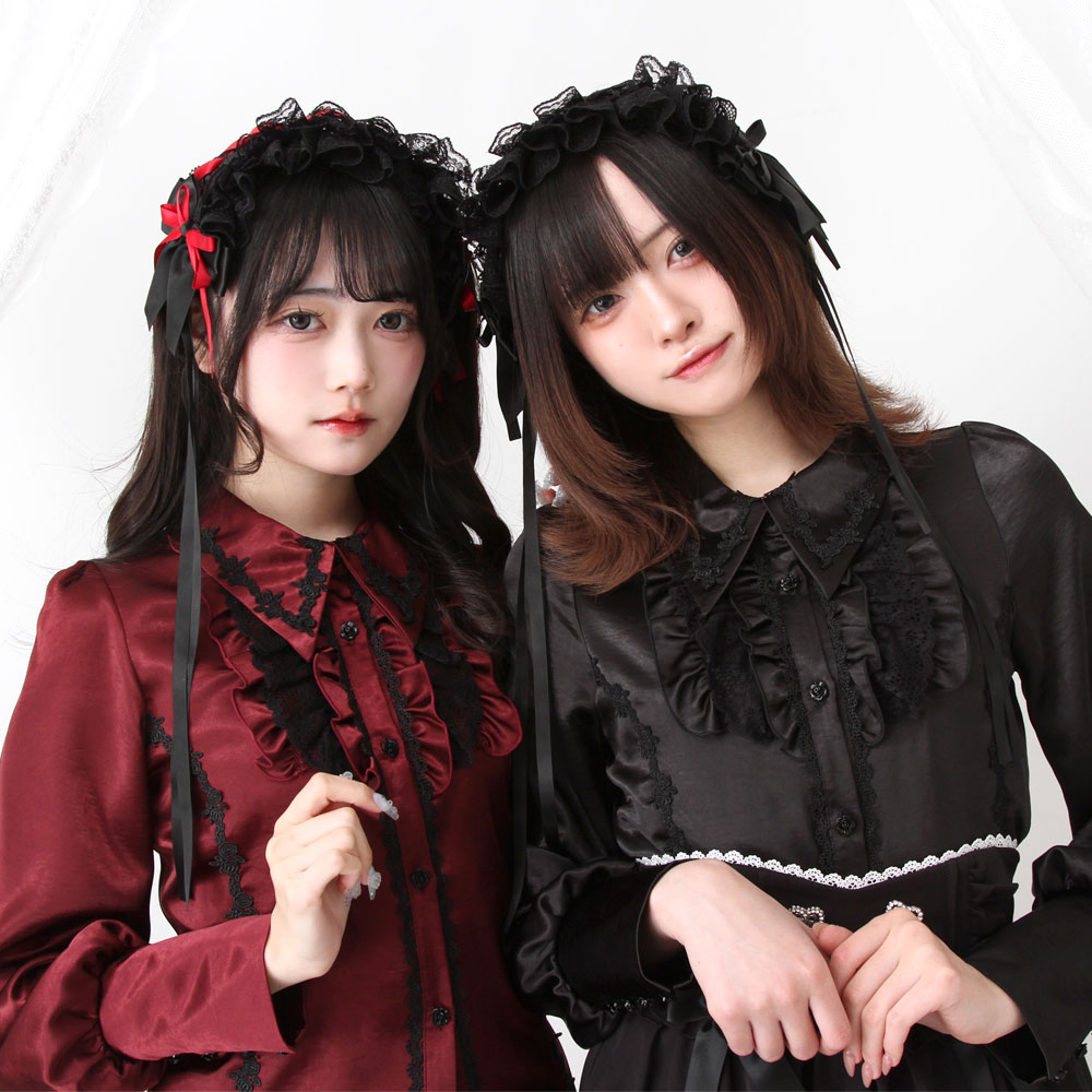 ヨーク部分にはたっぷりのレースフリルがあり、ゴシックスタイルに華やかさをプラス。