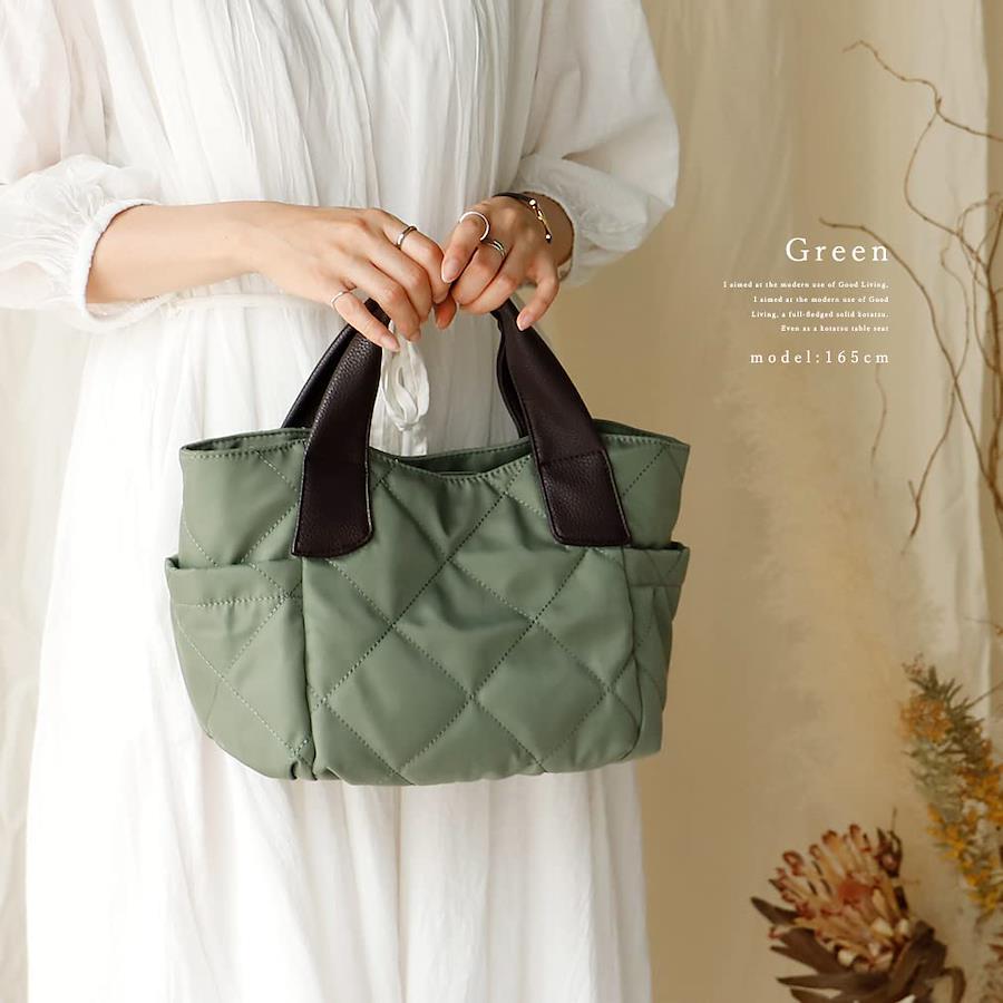 キルティング トートバッグ ナイロン バッグ B5 レディース 超軽量 通勤バッグ 大容量 2way お仕事バッグ ショルダーバッグ ナイロンバッグ 天ファスナー付き ボンディングトート マチ広 トートバック 秋冬 秋バッグ 秋バック Gratante大きめのキルティングが女性らしい2wayトートバッグ。 キルティング加工を施した丈夫な高密度ナイロンを使用し、上品で優しい雰囲気のバッグに仕上げました。 しっかりとマチが広く、普段使いはもちろん通勤バッグとしてもオススメです。 付属のショルダーベルトで肩掛け・斜め掛けができるのもお仕事バッグには必要なポイント。 シボのあるフェイクレザーのハンドルを合わせ、ナイロンとのコンビにすることでまとまりのあるデザインに。しっかりとマチがあり、たっぷり入る大容量。 収納ポケットも豊富で、バッグの両サイドにはペットボトルや折り畳み傘の収納に便利なオープンポケットが1つずつ。 内側には小分けができるファスナー付きポケットが2つ、すぐに取り出しができるオープンポケットが3つあります。 メイン収納はファスナー仕様で、しっかりと閉まるので中身が落ちる心配もありません。●SIZE:高さ:約22cm / 幅:約37cm(上辺)約24cm(下辺) / マチ:約13cm ●ハンドル長さ:約31.5cm×幅:約2cm、持ち手高さ:約11cm ●ショルダーベルト長さ:約65~120cm×幅:約2cm(取り外し可能/調節可) ●外ポケット:側面オープンポケット2 ●内ポケット:オープンポケット3、ファスナー付きポケット2 ●ショルダーベルト重量:約90g ●バッグのみ重量:約310g ●素材:ナイロン/PU ●仕様:2way ●バッグのメイン開閉口はファスナーになっております。