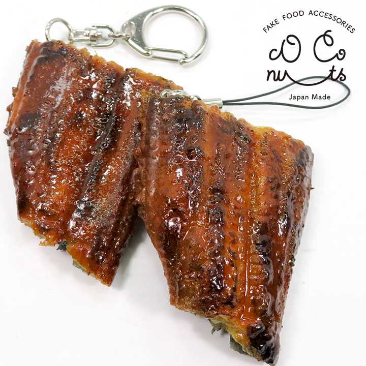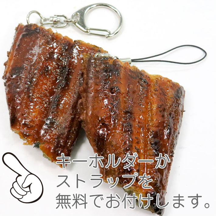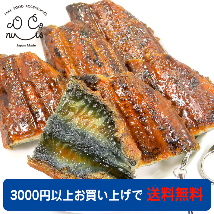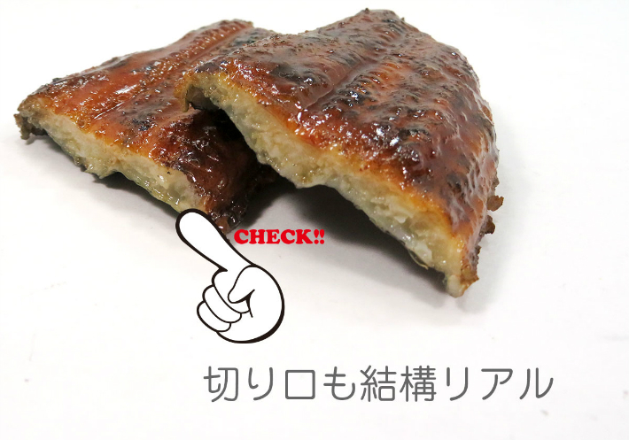 タップリ塗られたタレも、こんがり焦げ色も、とっても美味しそうに仕上がった鰻の蒲焼きの食品サンプルアクセサリーです。裏返してみれば、ちゃんと皮も再現してあります。