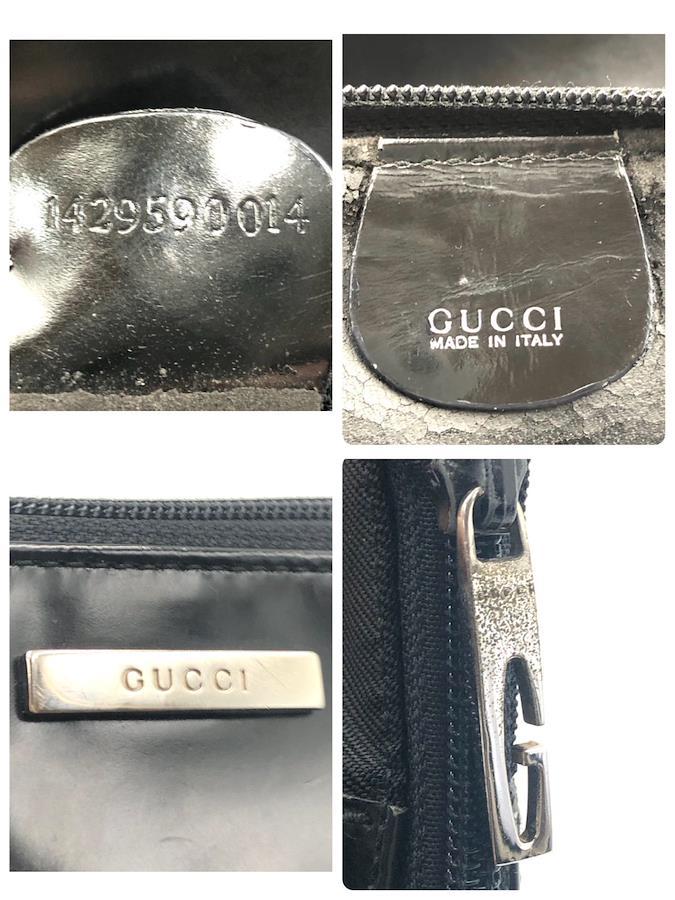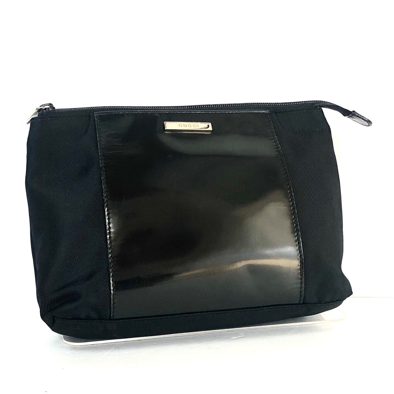 ■商品概要GUCCI グッチロゴプレートポーチナイロンキャンバス×レザーブラックシルバー金具イタリア製刻印ありラグジュアリー 高級 ハイブランド