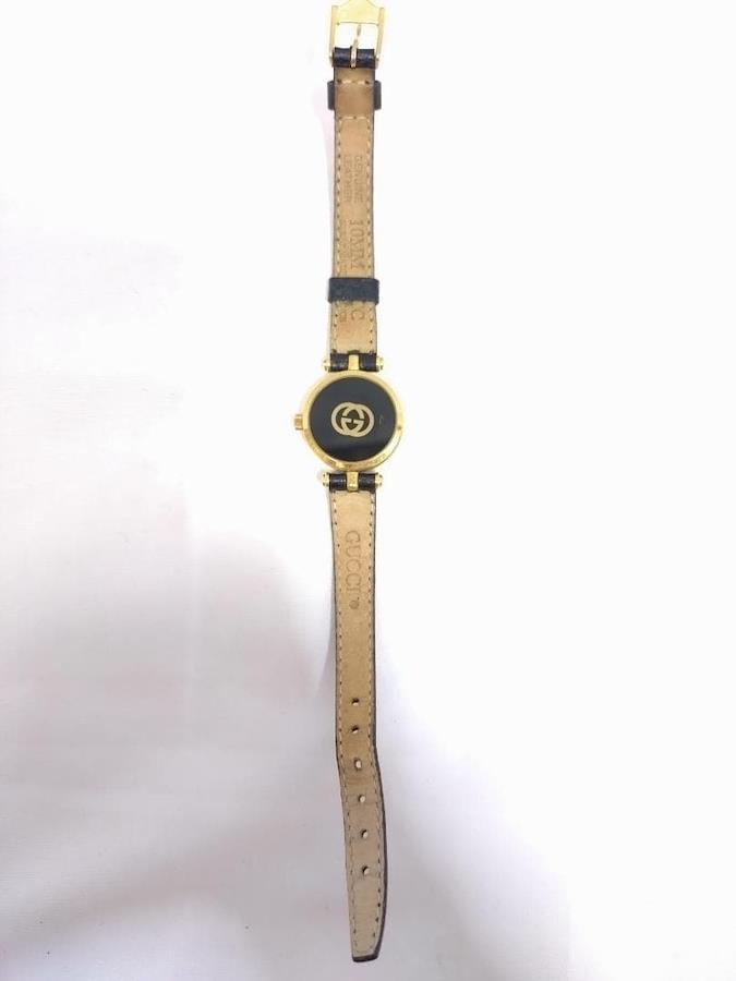 - ブランド: GUCCI- カラー: 黒/金- ストラップ素材: レザー- ダイヤル形状: ラウンド- 動作未確認のためジャンク品扱いでお願いします-本体に小傷・バンドに劣化多少あり