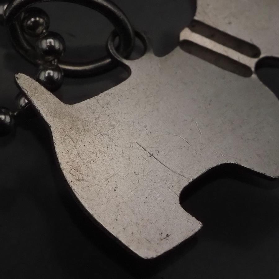 チャームは取り外し可能です。チェーンに925の刻印があります。チャームはおそらく銀製かと思いますが、刻印が無いため断言できません。画像をたくさん掲載しておりますのでそちらでご確認とご判断をお願いいたします。