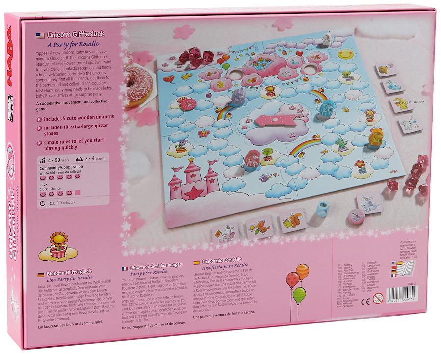 Yippee! 新しいユニコーン、赤ちゃんロザリーがクラウドランドにやってきます! ユニコーンのグリッターラック、スターダスト、マーベルフラワー、マジックスワールは、ロザリーに素晴らしいレセプションを提供し、大規模な歓迎パーティーを開催したいと考えています。 ユニコーンが協力してすべての友達を見つけ、パーティークラウドに連れて行き、10個の雲のクリスタルをすべて集めましょう。 急ぎ、赤ちゃんロザリーがサプライズパーティーに到着する前に、すべてを準備しておく必要があります。 協力運動と収集ゲーム。 かわいい木製ユニコーン5個と特大グリッターストーン10個入り。 素早くセットアップでき、約15分で再生できます。 4~99歳の2~4人用。 ユニコーンが協力してすべての友達を見つけるのを手伝ってください。パーティーの雲に連れて行き、10個の雲の結晶をすべて集めましょう。 ベビーロザリオがサプライズパーティーに到着する前に急いでください。 ユニコーンのGlitterluckシリーズテーマの一部。 Glitterluck、Stardust、Marvel Flower、Magic Swirlは、Rosalineに素晴らしいレセプションを与え、大きなパーティーを開きたいと願っています。 2~4人で遊べる協力運動とコレクションゲーム。対象年齢4~99歳。 ゲーム時間:15分。 内容:ユニコーン4個:グリッターラック (ホットピンク)、スターダスト (イエロー)、マーベルフラワー (パープル)、マジックスワール (ターコイズ)、ベビーユニコーン - ロザリー (ピンク)、サイコロ1個、スピニングアロー付きゲームボード1個、ラウンドフレンドタイル8個、スクエアフレンドタイル8個、雲クリスタル10個、説明書1セット。 この協力ゲームでは、10個の雲の結晶でBaby Rosalieをパーティーに打ち勝ちます。または、Baby Rosalieが最初にパーティーに到達した場合は一緒に勝つでしょう。