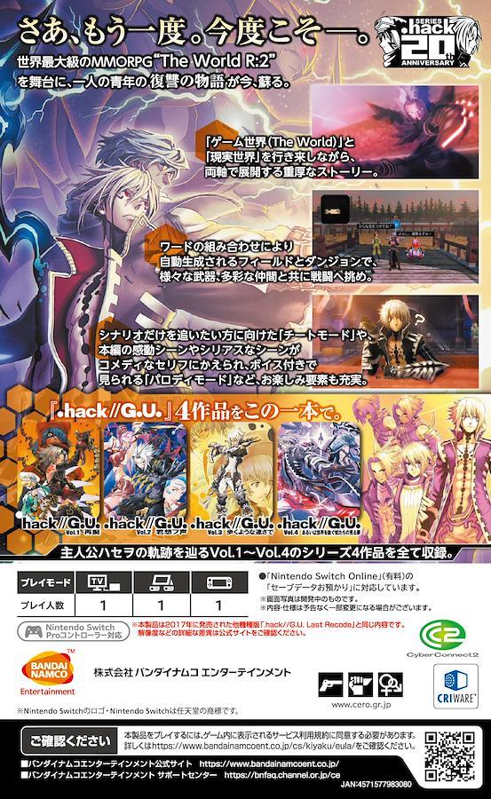※本製品は2017年に発売された他機種版「.hack//G.U. Last Recode」と同じ内容です。解像度などの詳細な差異は公式サイトをご確認ください。