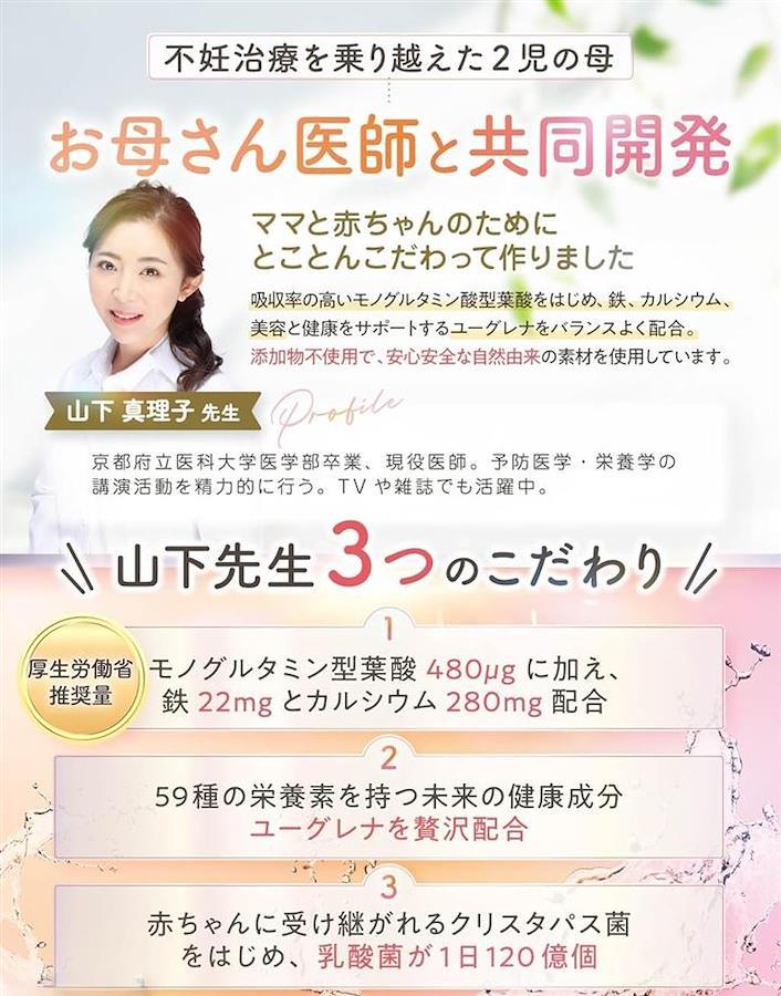 現役医師であり、2児のママでもある山下先生と共同開発 hahanaru葉酸はより効率的かつ総合的にママと赤ちゃんの健康を支えるオールインワンサプリです。