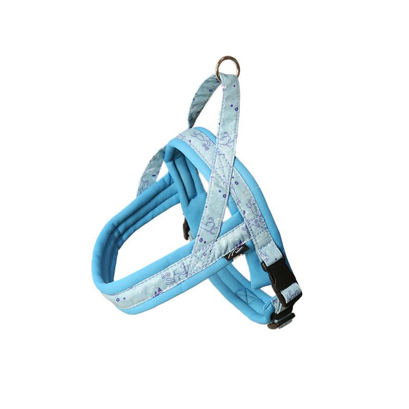 ・The latest upgraded model of Hakusan’s classic T-shaped “First Harness” with improved functionality and wearing comfort.・New dog harness model launched in “the year of the Rabbit” in the Japanese zodiac.・The traditional T-shaped dog harness is easy to put on and take off with its simple ergonomic design.・Lavishly padded with soft cushioning neoprene material, the highly durable and strong harness ensures a perfect fit for any kind of dog.・Equipped with bright reflective stitch lines sewn into the webbing, top-quality YKK plastic buckles and a useful handle on back.・Available in a wide range of colors and sizes.