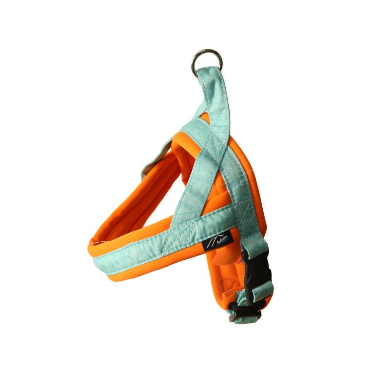 ・The latest upgraded model of Hakusan’s classic T-shaped “First Harness” with improved functionality and wearing comfort.・New dog harness model launched in “the year of the Rabbit” in the Japanese zodiac.・The traditional T-shaped dog harness is easy to put on and take off with its simple ergonomic design.・Lavishly padded with soft cushioning neoprene material, the highly durable and strong harness ensures a perfect fit for any kind of dog.・Equipped with bright reflective stitch lines sewn into the webbing, top-quality YKK plastic buckles and a useful handle on back.・Available in a wide range of colors and sizes.