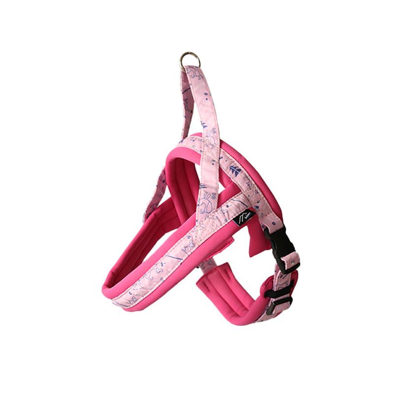 ・The latest upgraded model of Hakusan’s classic T-shaped “First Harness” with improved functionality and wearing comfort.・New dog harness model launched in “the year of the Rabbit” in the Japanese zodiac.・The traditional T-shaped dog harness is easy to put on and take off with its simple ergonomic design.・Lavishly padded with soft cushioning neoprene material, the highly durable and strong harness ensures a perfect fit for any kind of dog.・Equipped with bright reflective stitch lines sewn into the webbing, top-quality YKK plastic buckles and a useful handle on back.・Available in a wide range of colors and sizes.