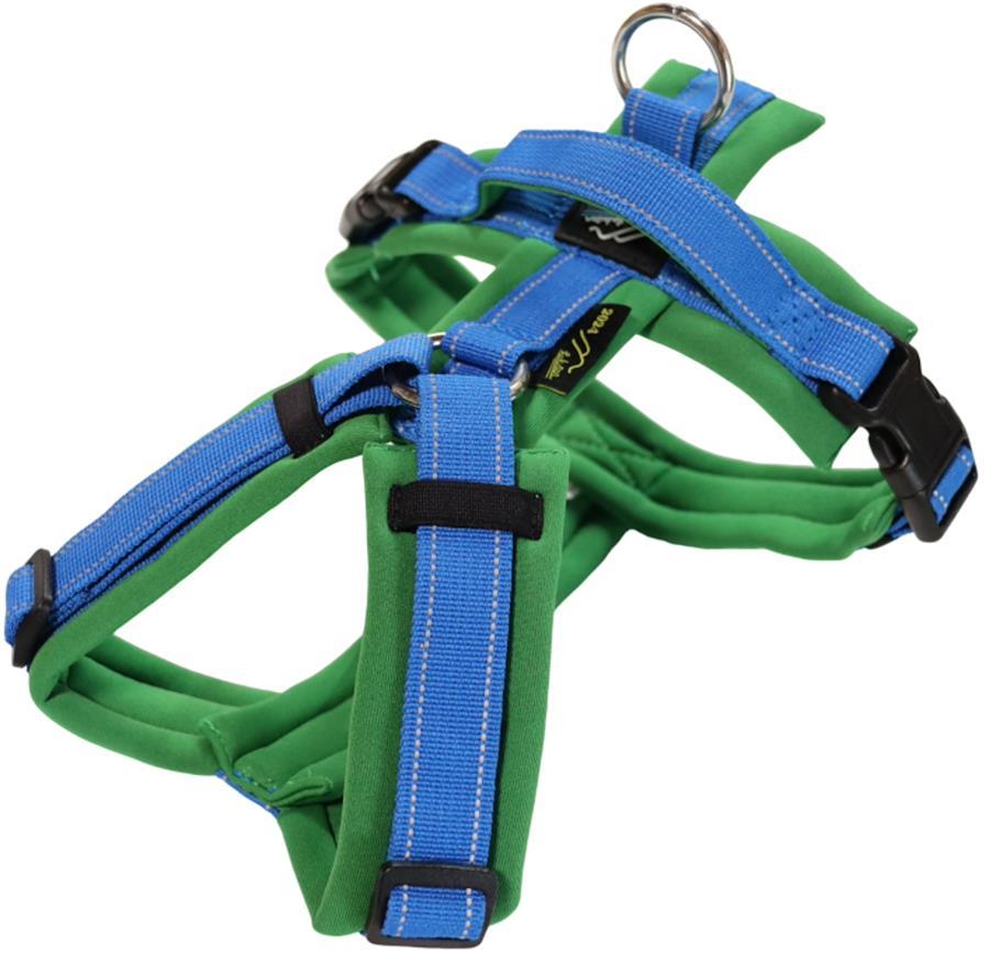 ・The inside is lavishly padded with soft cushion material, ensuring the best wearing comfort of your dog.・The innovative comfort-centered design reduces pulling, strain, constriction or any other pressure on the dog’s neck and trachea and allows the harness to stay in the right position.・Features a high-quality neoprene fabric with fast-drying function.・Adjustable on both neck and chest. Easy to fit on for many breeds.・Easy to attach/detach by using side buckles. No need to lift up the legs.・With a convenient handle. (Tiny,XXS size has no handle)・Available in a wide range of color options: the lineup includes bright, cheerful or dark tones, classical plain colors, various denim designs, and the traditional Japanese arabesque “Karakusa”.