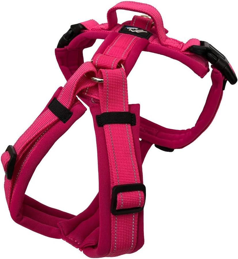 ・The inside is lavishly padded with soft cushion material, ensuring the best wearing comfort of your dog.・The innovative comfort-centered design reduces pulling, strain, constriction or any other pressure on the dog’s neck and trachea and allows the harness to stay in the right position.・Features a high-quality neoprene fabric with fast-drying function.・Adjustable on both neck and chest. Easy to fit on for many breeds.・Easy to attach/detach by using side buckles. No need to lift up the legs.・With a convenient handle. (Tiny,XXS size has no handle)・Available in a wide range of color options: the lineup includes bright, cheerful or dark tones, classical plain colors, various denim designs, and the traditional Japanese arabesque “Karakusa”.