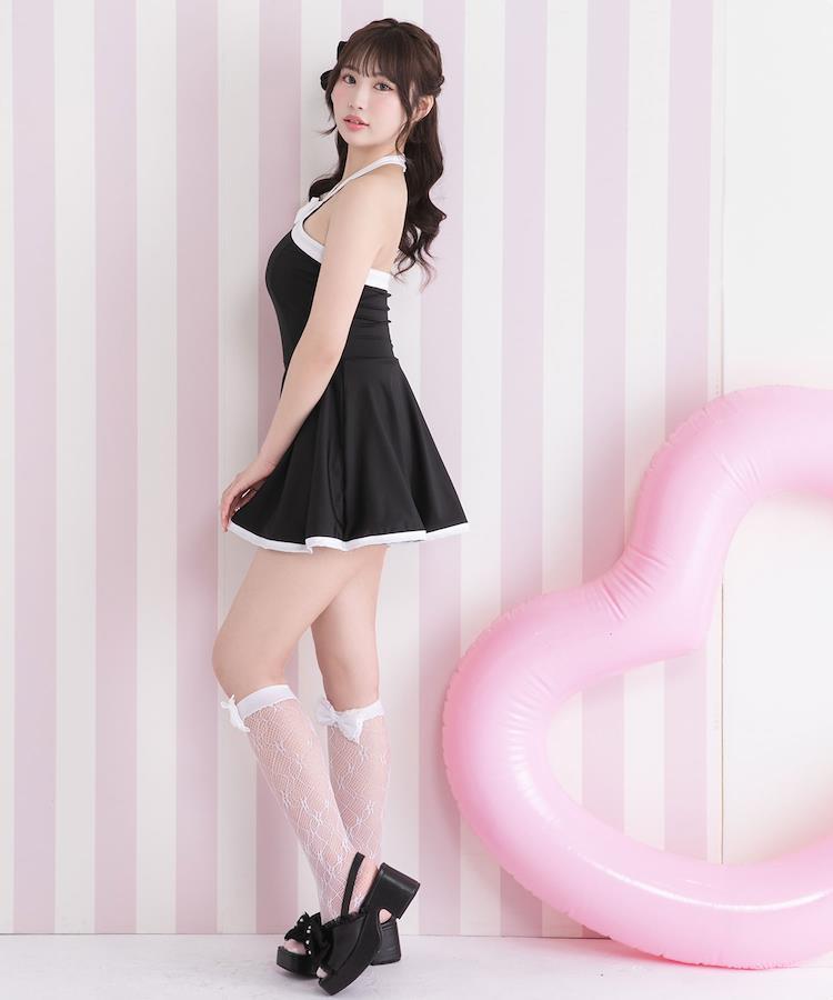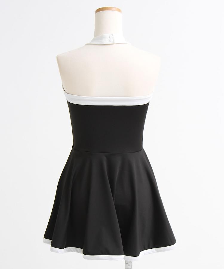 ホルターネックは首後ろでスナップボタンを留める仕様で、2段階の調整が可能◎