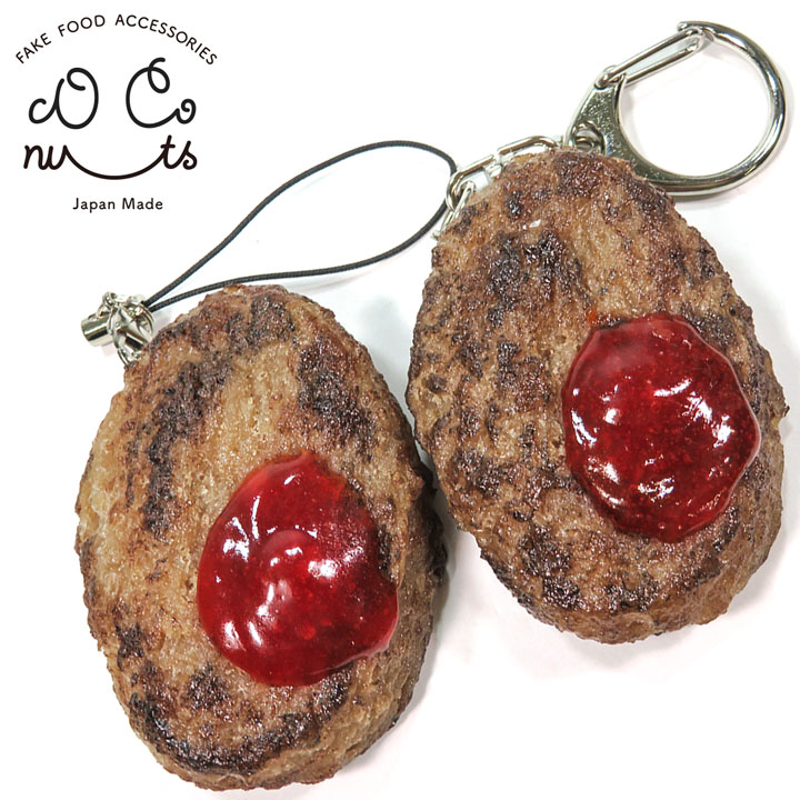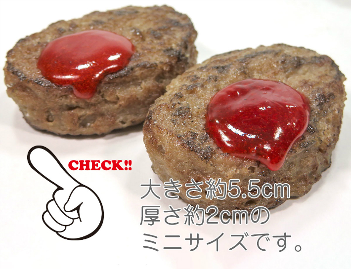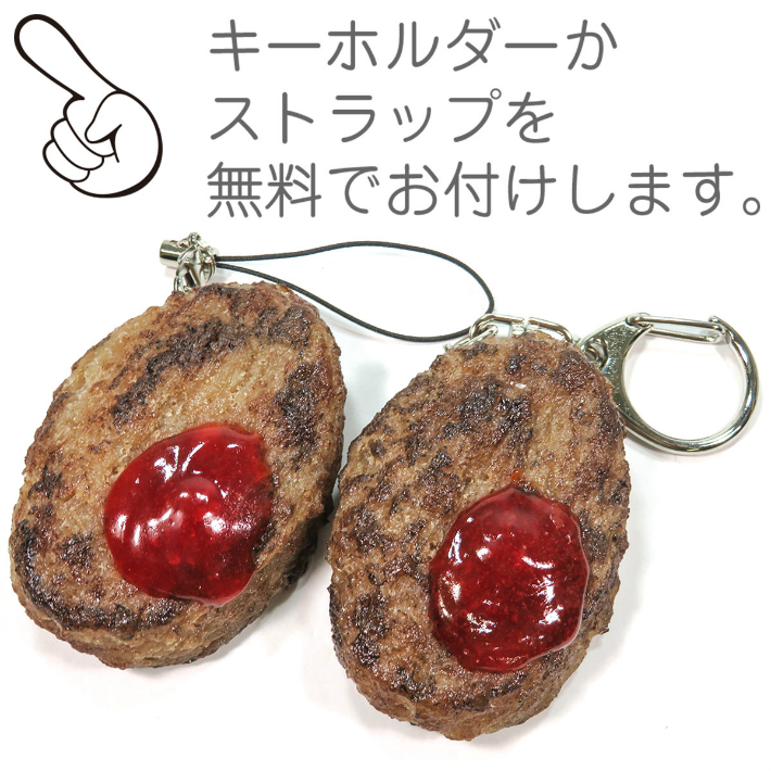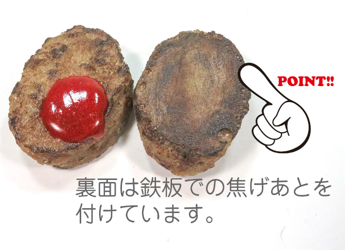 かわいらしいミニチュアサイズ(約5.5cm)のハンバーグです。小さいながらもリアルな焦げ目ととろーりケチャップが美味しそう。
