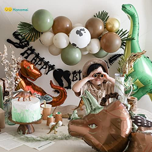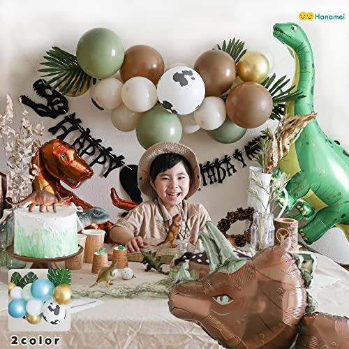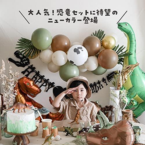 【Hanamei誕生日なりきりテーマデコレーション:恐竜】男の子に大人気!恐竜のセットが誕生しました!大きな体で大迫力な恐竜バルーンが大興奮間違いなし! 強い!大きい!かっこいい!! 男の子に大人気の恐竜たちがお誕生日のお祝いにきました! 爽やかでお洒落なバルーンガーランドには恐竜の卵をイメージした物やフレッシュなグリーンを取り入れ、他には無い豪華でおしゃれな空間が手に入ります。 ビッグサイズのフィルムバルーンは3種類の迫力あるダイナソー!! 飾るのはもちろん、バルーンプロップスとしても楽しめます。 【華やかなバルーンガーランド】大小のバルーンが連なるバルーンガーランド。その華やかさは世界中でトレンドのデコレーションアイテムになっています。一見難しそうなバルーンガーランドですが、付属のツール(バルーンチェーン)を使えば簡単にバルーンガーランドが完成します。バルーンの膨らまし作業にはエアポンプがオススメ。別途ご用意ください。 【セット内容】ティラノザウルス(H91cm ×W76cm)、ブラキオサウルス(H70×W116cm)、トリケラトプス(H60cm×W110cm)、バルーン大3色x3個+予備1個、・バルーンガーランドキット 大バルーン3カラー×3個(予備各1個) 小バルーン2カラー(8個(予備2個)/4個(予備1個)) ゴールドバルーン4個(予備1個) バルーンチェーン:1個(約5m) ・フェイクグリーン(ヤシの葉(3枚)) ・Happy Birthday フェルト恐竜バナー ・フィルムバルーン(3種類) 【注意事項】・ゴムバルーンは稀に検品では見つけにくい穴があいている場合がございます。予備バルーン各1個をお入れしておりますので、万一の際はご活用下さい。 ・小さなバルーンは口での膨らし難しい場合がございますのでエアポンプのご使用を推奨しております。・バルーンガーランドは約10日間ほどお楽しみいただけますが、空気を入れて作ってから約3-4日でツヤが無くなってきます。個体差、結びの度合いによってしぼみが早い場合があります。 ・紙製品に関しまして、製品性質上、輸送の際、折れ目がつく場合がございます。あらかじめご了承くださいませ。 【注意事項】ゴムバルーンは稀に検品では見つけにくい穴があいている場合がございます。予備バルーン各1個をお入れしておりますので、お使いくださいませ。小さなバルーンは口での膨らし難しい場合がございますのでエアポンプのご使用を推奨しております。また、フィルムバルーンのサイズが大きいため、エアポンプのご使用をお勧め致します。