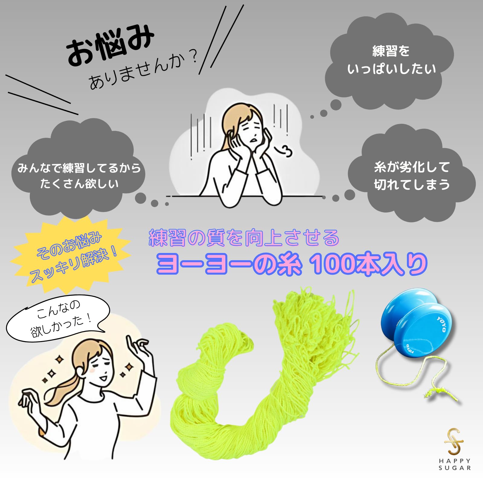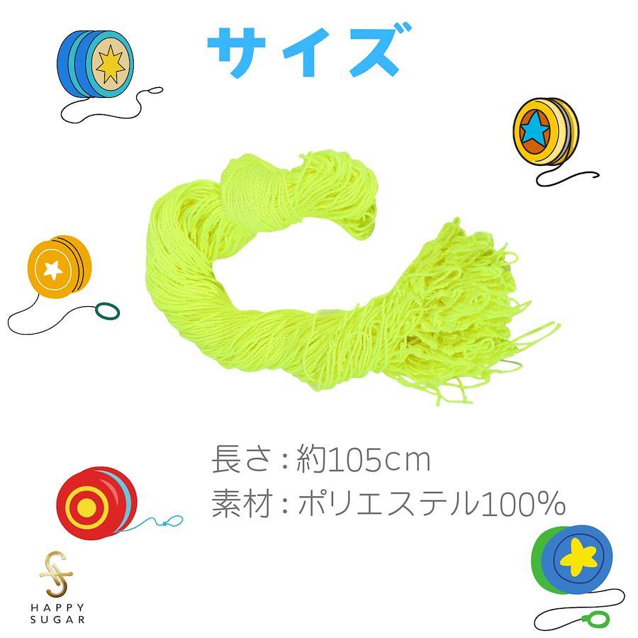 【練習の質を向上させる「こまめな交換」】ヨーヨーを練習する際、糸が劣化するとパフォーマンスに影響が出ます。この商品は約100本入りで提供され、いつでも新しい状態で練習できるため、コンディションを維持し、上達の近道となります。頻繁に交換することで、ストレスなくスムーズな技が決まります。 【お得感と実用性の両立】大量に入った約100本セットは、コストパフォーマンスに優れています。日常的に使うヨーヨーの糸を手軽に交換できるため、常にベストなコンディションで練習できます。 【耐久性と対応力を兼ね備えた素材】ポリエステル100%で作られており、綿糸よりもはるかに強度が高く、汗で濡れても性能が落ちることはありません。競技用ヨーヨーに対応した設計で、バインドやルーピングの技に最適化されています。長さも105㎝で、必要に応じてカット可能なため、ユーザーのニーズに柔軟に応えます。 【多用途な設計と高い互換性】競技用としてだけでなく、趣味で楽しむ方にも最適です。スタンダードな太さで、さまざまなヨーヨーに対応しているため、初心者から上級者まで幅広い層に利用いただけます。 【商品詳細】長さ:約105㎝ 素材:ポリエステル100% 入数:約100本入 ※本数は100本を指定していますが、コスト削減のためダブルチェックを簡略しています。稀に100本と異なる場合がございますが、それによりお値打ちなお値段を実現しているためご理解の上お買い求めください。
