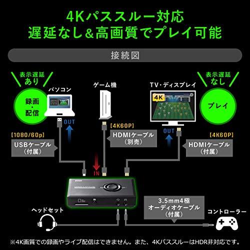 HDMI出力される映像をパソコンに録画できる、HDMIキャプチャーです。ゲーム機と接続することでゲームの録画、配信をすることが可能です。4K/60pパススルー機能を搭載しており、録画や配信中でもほぼ遅延なくテレビに出力され、高画質映像でプレイできます。