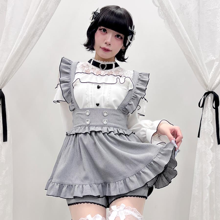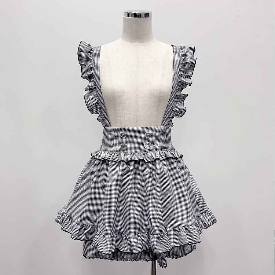 量産型コーデにぴったりなマストバイボトム!【デザイン】あえてチラ見せさせるショートパンツをドッキングした、キュロットデザイン♪幅広ウエスト×ミニ丈でスタイルアップを叶えてくれるアイテム。取り外し可能なサスペンダーは取り外しもでき、コーデの幅が広がります。王道ブラックと、甘めなギンガムチェックの2色展開でご用意しました。お友だちとの双子コーデにもおすすめです!【素材】シーズンレスにお使いいただけるさらっとした素材です。《透け感》なし 《生地の厚さ》普通 《裏地》なし 《伸縮性》なし《生産国》中国