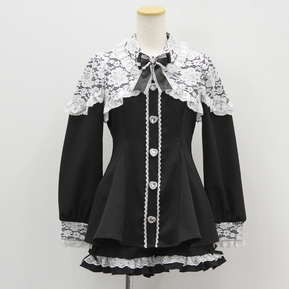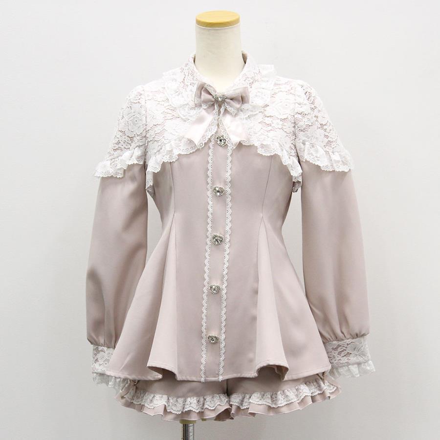 襟やボレロ切替デザインにレースが重なったかわいい上品セットアップです♪