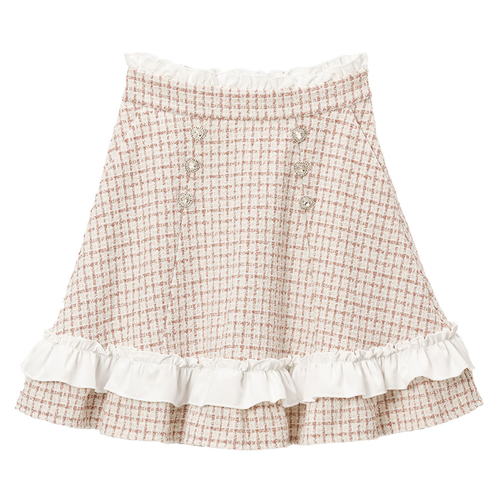 かわいいツイードチェック生地に、無地フリルがポイントのスカート