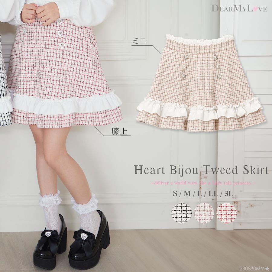 キラキラ輝くハートビジュー付きツイードスカート