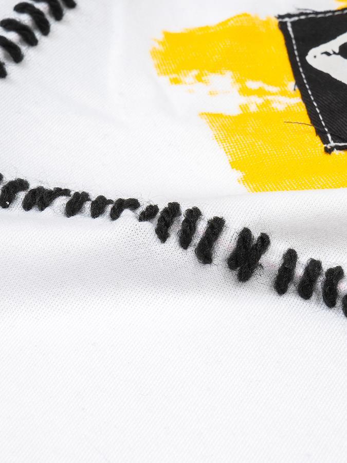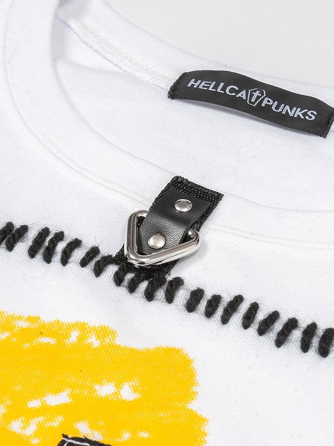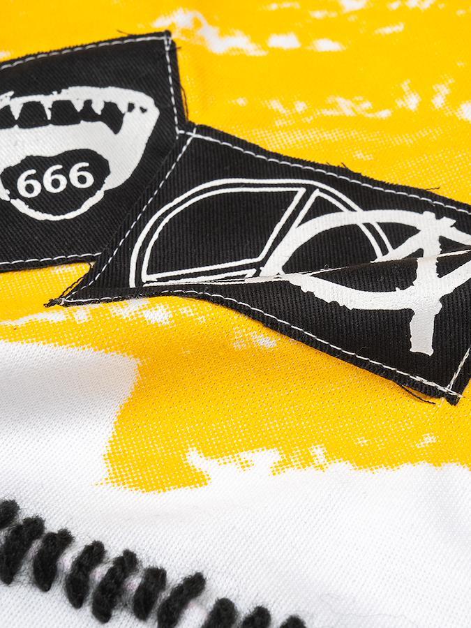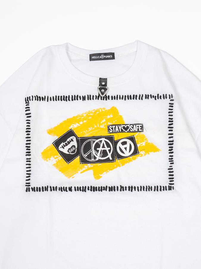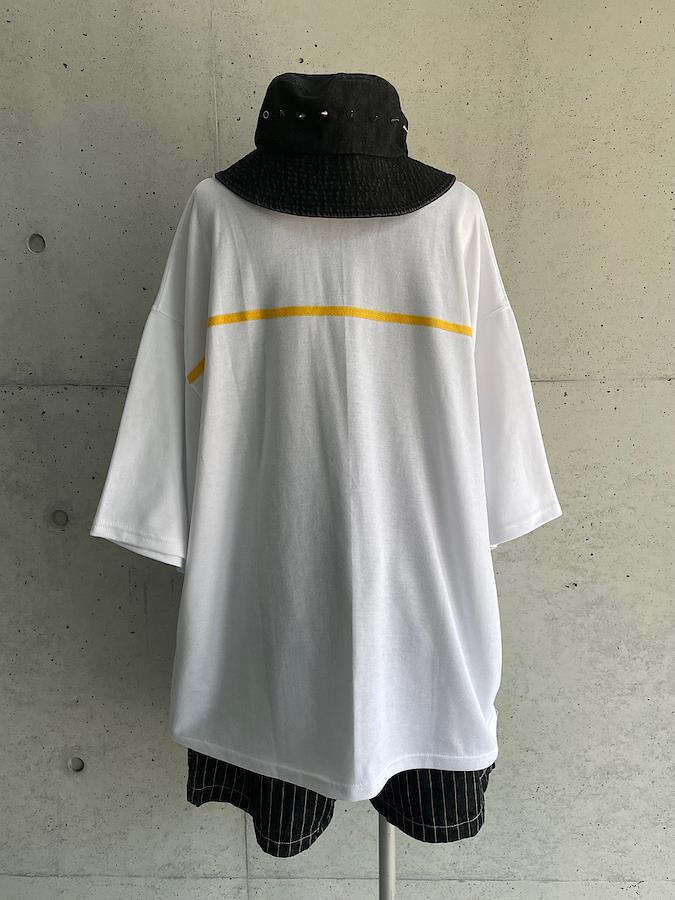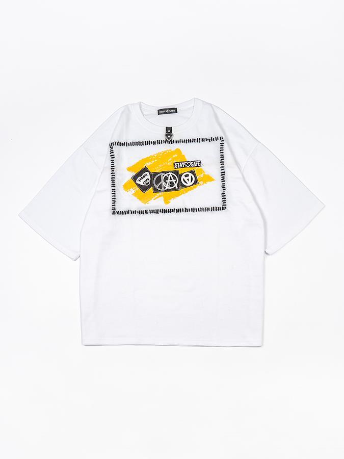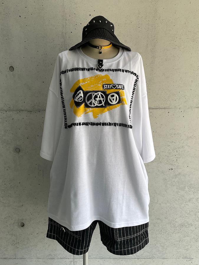 アクセントカラーの黄色が目をひくペイントTシャツ。パンキッシュなデザインのオリジナルパッチもポイント☆男女問わず着用可能なビッグシルエットです。
