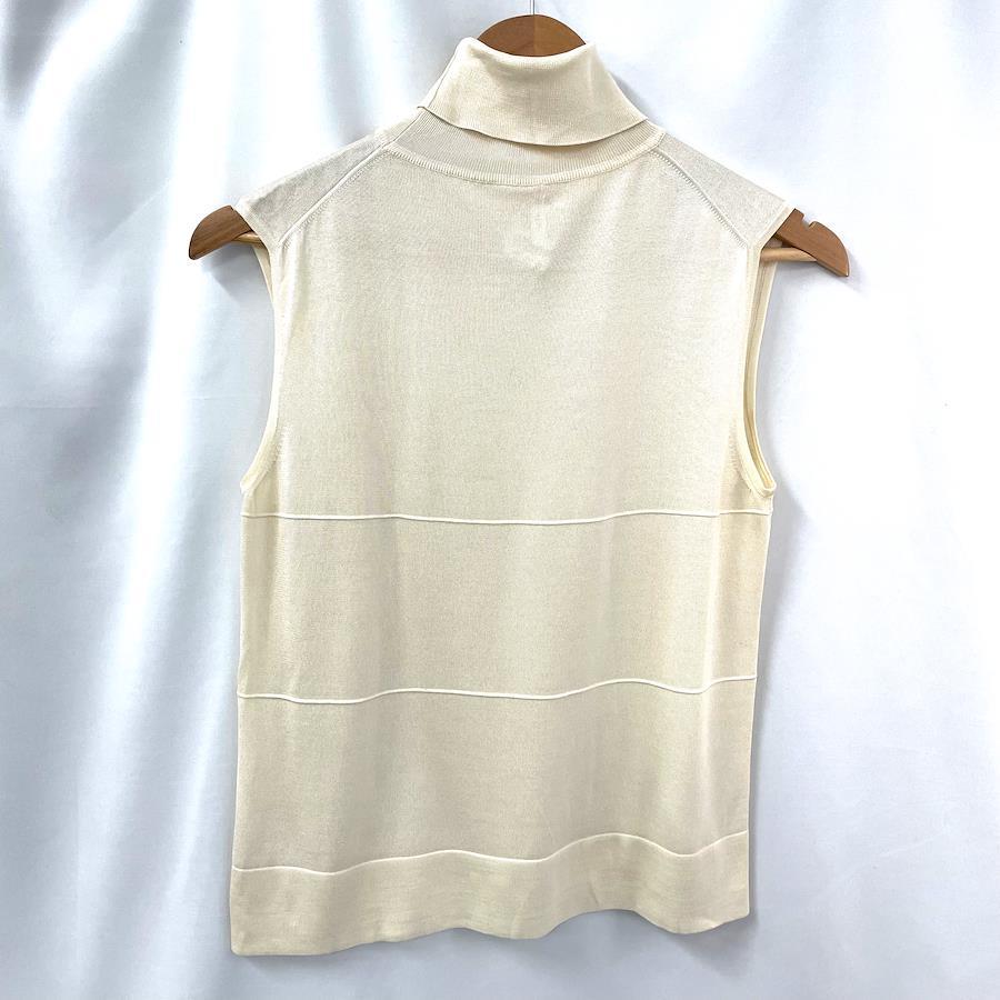 【商品説明】●品名:HERMES エルメス ノースリーブ ニットタンクトップ (16266)●形状:ニットタンクトップ●サイズ(約):肩幅35cmx身幅42cm×着丈52cm×タートル部分13cm●素材:シルク100%●カラー:ホワイト●製造国:ITALY●付属品:なし●シーズン:春夏●伸縮性:あり