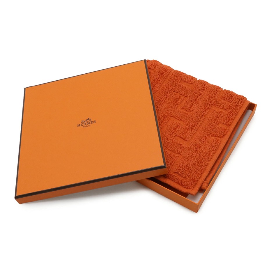 HERMES Hermes Carre Towel, Stairs, H Logo, Face Towel, Guest Towel, 100% Cotton, Orange Feu (Orange) [Used]