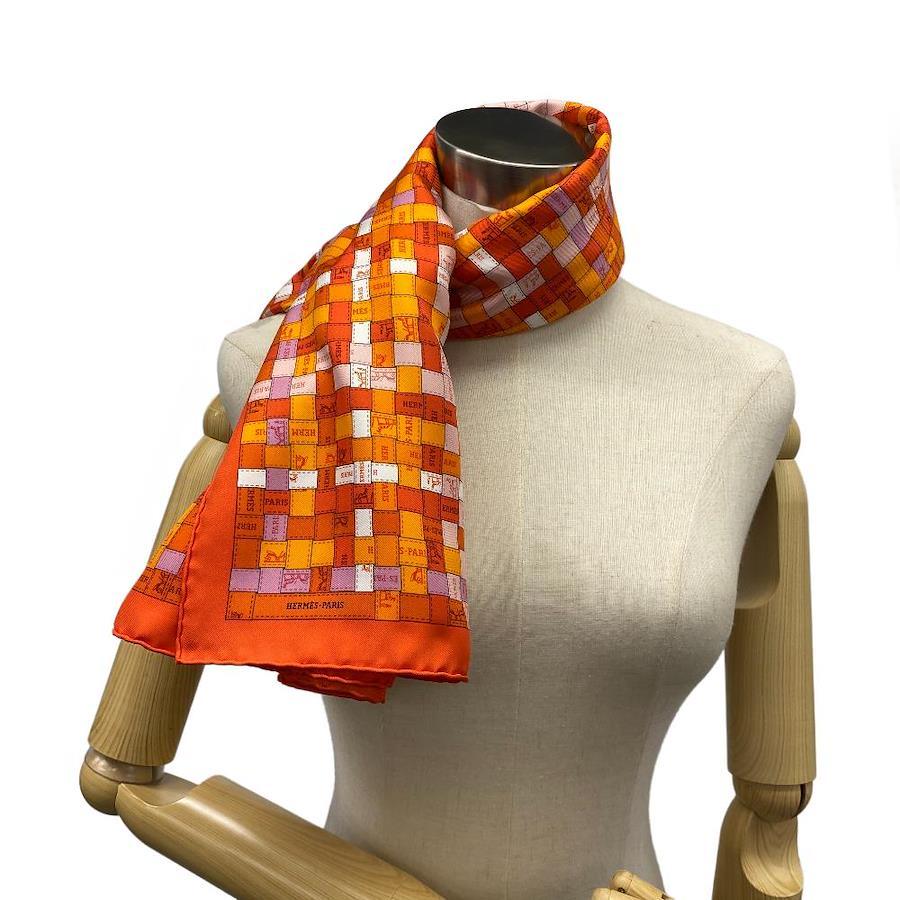 商品名 | HERMES/エルメス カレ90 BOLDUC AU CARRE ボルデュックチェック スカーフ オレンジ ユニセックス |