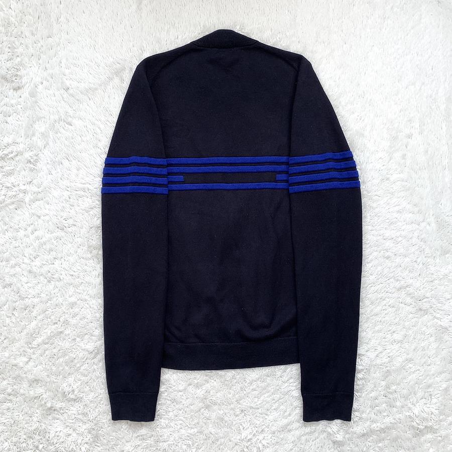 トーンの違うネイビーカラーで切り替えをし、フロント&ポケットのジップにはエルメスオレンジカラーの止水テープでアクセントを入れたランウェイモデルならではの仕上がり
