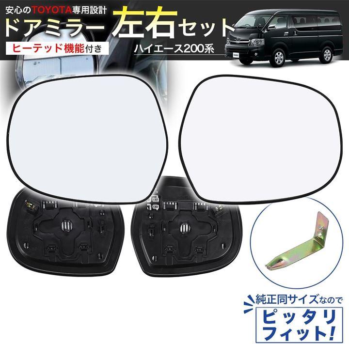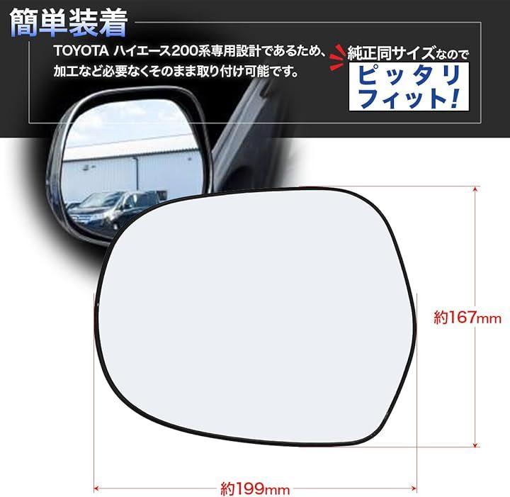 純正同サイズなのでピッタリフィットします。ハイエース 200系 サイドミラー レンズ 左右セット(ヒーテッド機能付き)とマイクロファイバータオルになります。