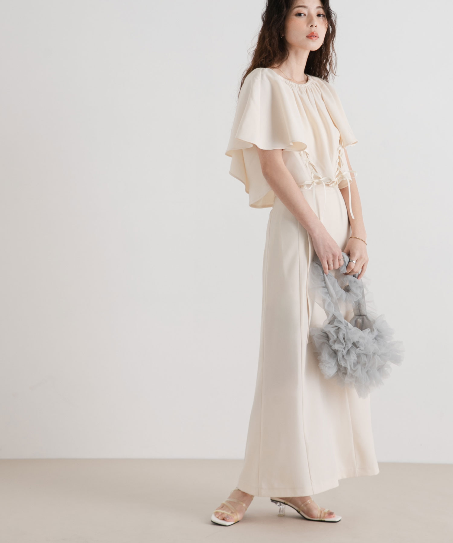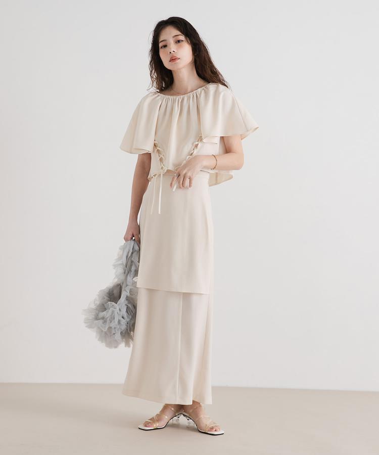 同素材のレースアップトップス(535434)と合わせれば大人上品な着こなしに!