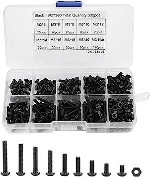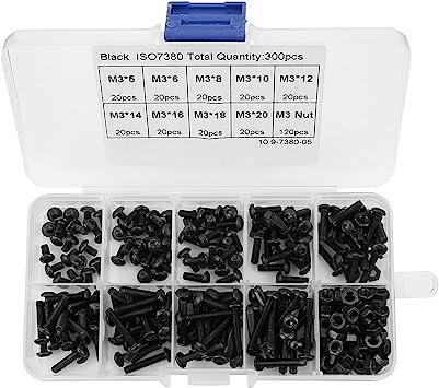 通常1-5営業日で発送:Hilitand 六角穴付ボタンボルト 六角ナットキット M3×5/6/8/10/12/14/16/18/20mm 炭素鋼製 高強度ボルト 300個入り ブラック