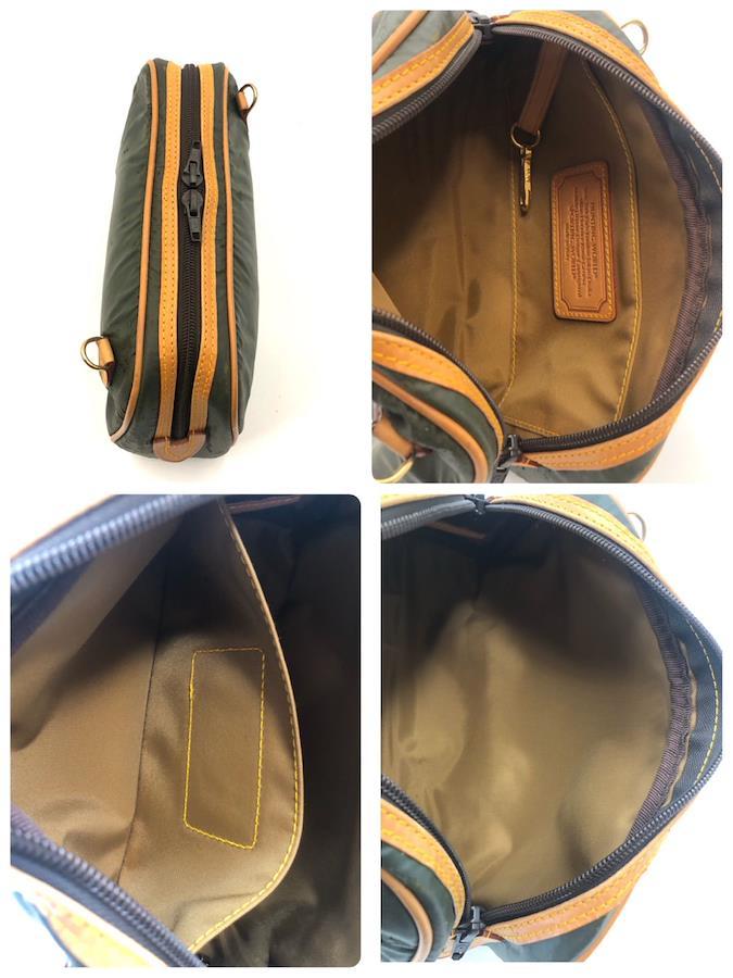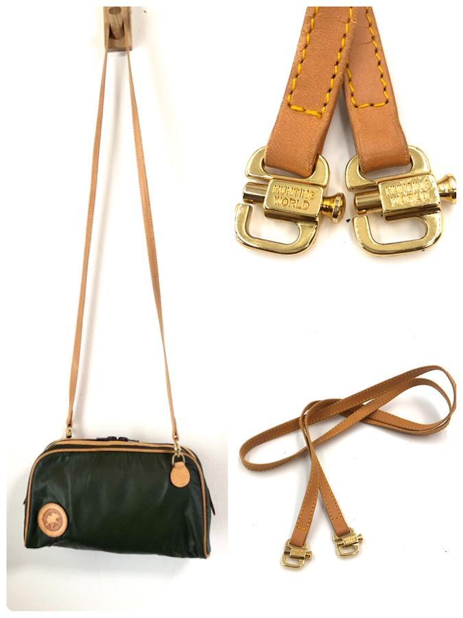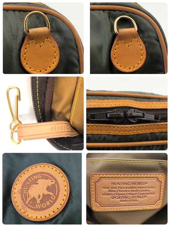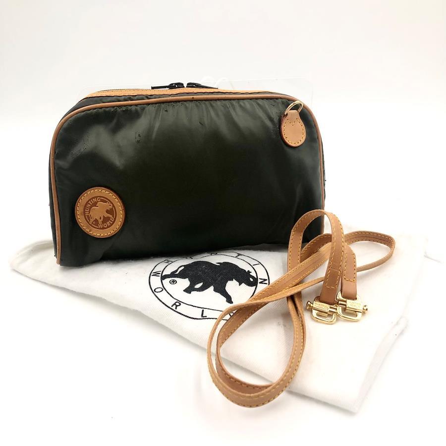 ■商品概要Hinting World ハンティングワールド2way ショルダーバッグ クラッチバッグバチュークロス×レザーグリーン×ブラウンイタリア製刻印ありレディース斜めがけ クロスボディ保存袋、ショルダーストラップつき