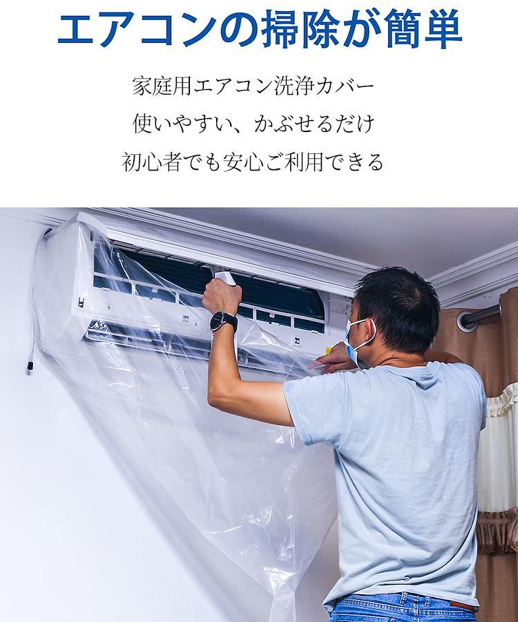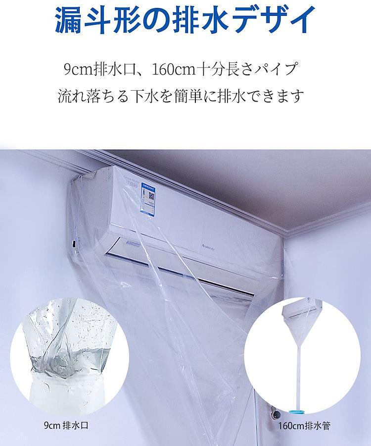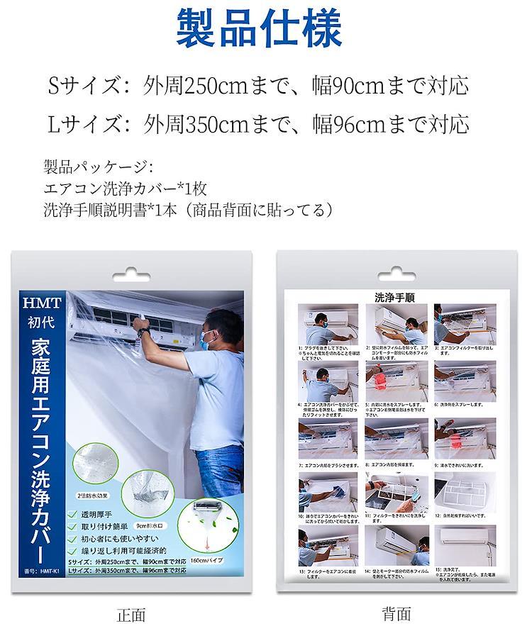 3営業日以内に発送≪新品未開封品≫:【エアコンの掃除が重要です】コロナの影響で、毎日家を綺麗に掃除し、エアコンの掃除も忘れないでくださいね!エアコンの冷房機能が低下して!?ホコリ・カビ・臭いニオイして!?定期的に内部の掃除が大切ですよ!【HMT家庭用エアコン洗浄カバー】調整可能伸縮ゴム付け、エアコンにピッタリとフィット感な洗浄カバー、簡単にかぶせるだけで、すぐ掃除始まります。初心者一人でも安心してお使えます。詳しい洗浄手順説明書も付けて、誰でもすぐ上手になります。【使い易い高透明厚手洗浄カバー】高透明樹脂素材で、作業空間がスッキリ見やすいです。掃除にもっと楽になります。厚手で丈夫な素材なので、繰り返し利用可能です。主婦の味方に間違いないです!【一体化成形で2倍防水効果】耐久性が十分な0.1mm厚さで、一体化成形工芸、縫い目も防水加工したことで、従来品より、2倍防水効果を向上します。収納も便利です。9cm大き排水口、160cm十分長さパイプを備えて、下水を速く排出できます。【適用エアコンサイズ】Sサイズ:外周250cmまで、幅90cmまで対応 Lサイズ:外周350cmまで、幅96cmまで対応 美掃業者、エアコン洗浄