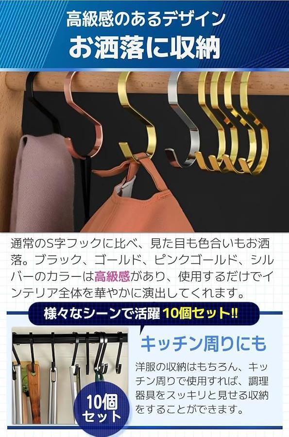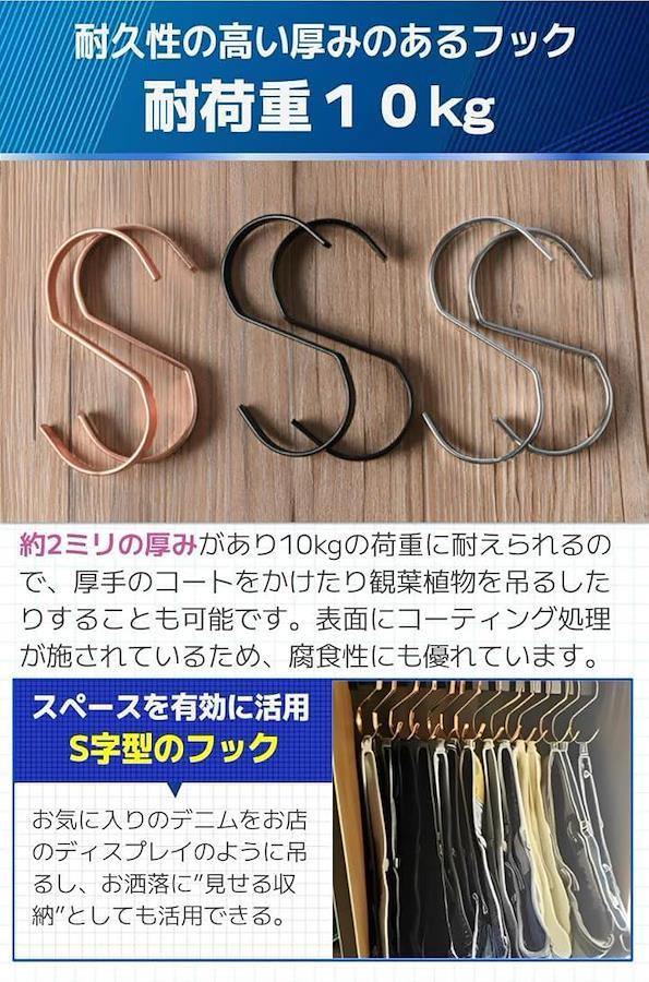 「お洒落に収納」通常のS字フックに比べ、見た目も色合いもお洒落。