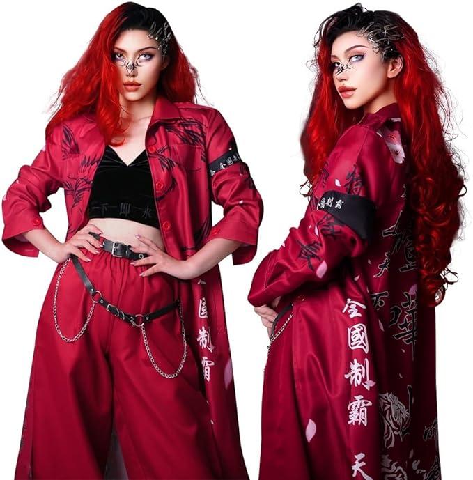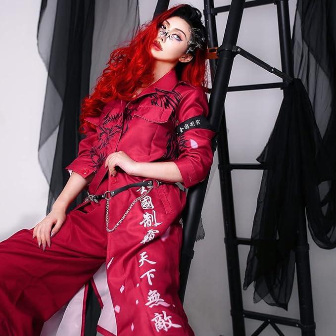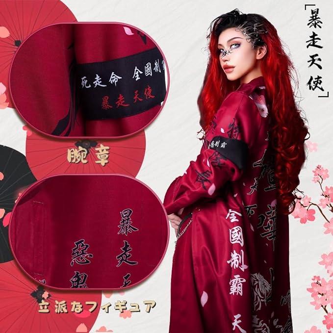 ■商品名[Hotiego] ハロウィン 特攻服 コスプレ ヤンキー 赤 喧嘩上等 ツッパリ 不良 暴走族 暴走天使 聖夜制覇 走死走命 天上天下唯我独尊 愛羅武勇 コスチューム 男女兼用 舞台装 演出服 変装 仮装 イベント 忘年会 cosplay 撮影 祭り 龍虎 L