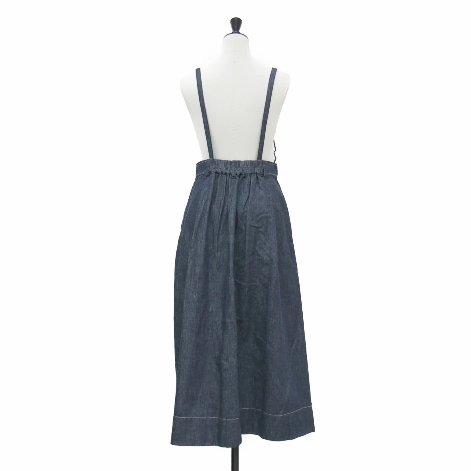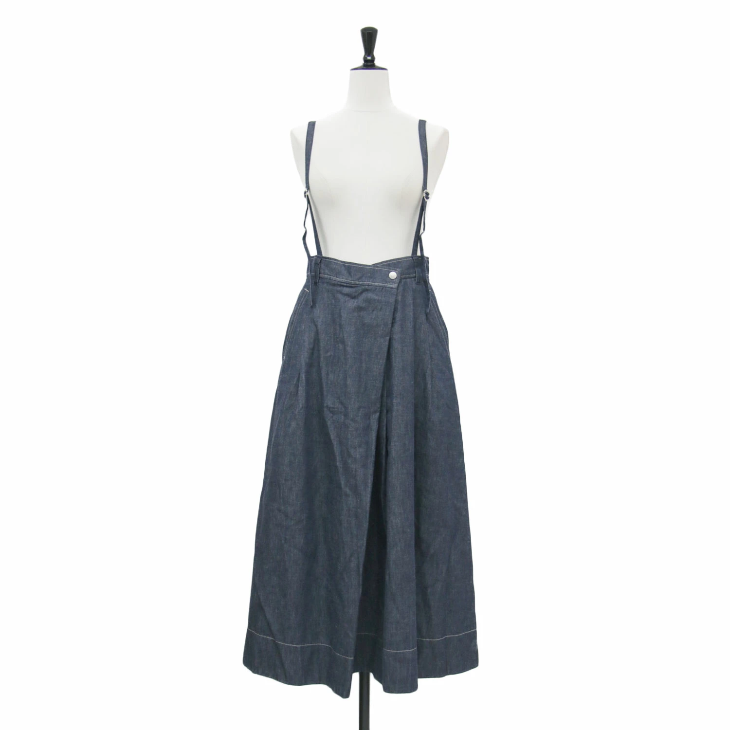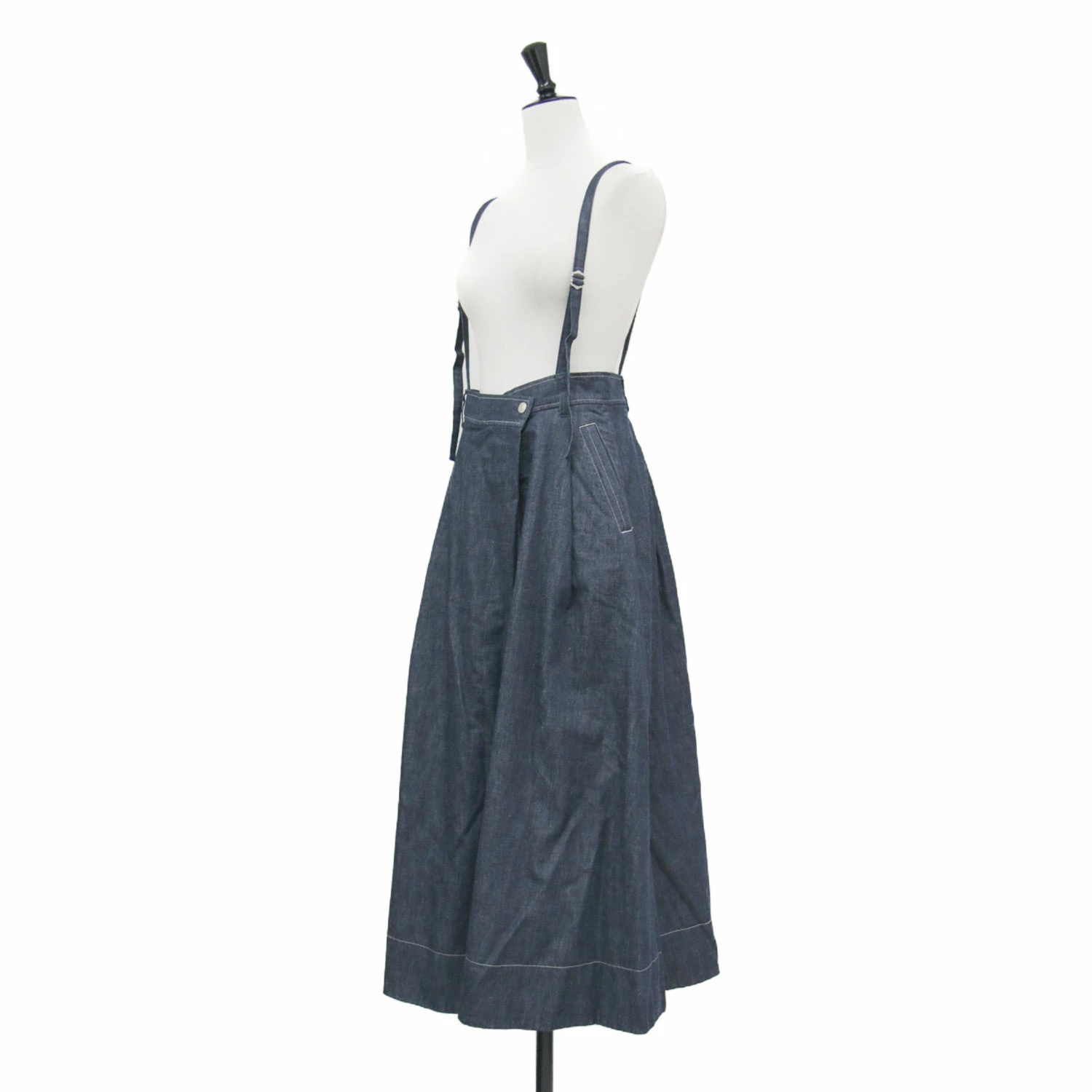 HUMAN WOMAN Indigo Skirt, Size M | Spring/Summer 2024 Lightweight Denim Jumper Skirt with Tucks | 2-Way Elastic Waist, Tucked, Stitched Cotton | Women's Bottoms | Pre-owned | K4745