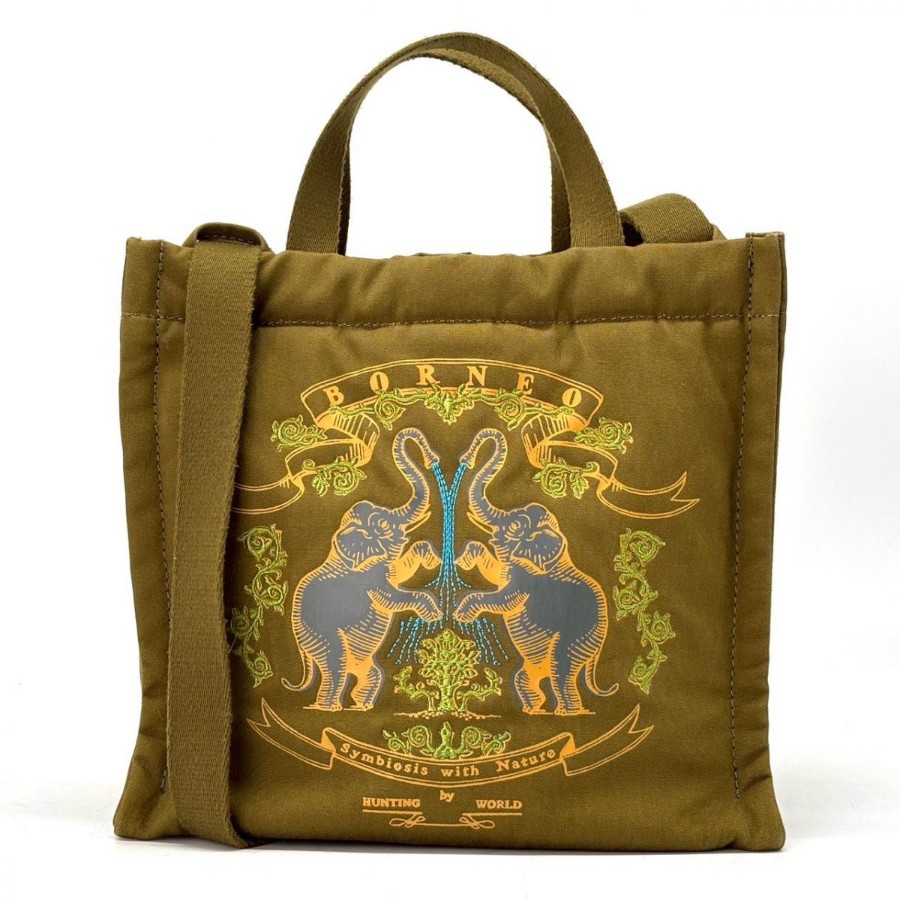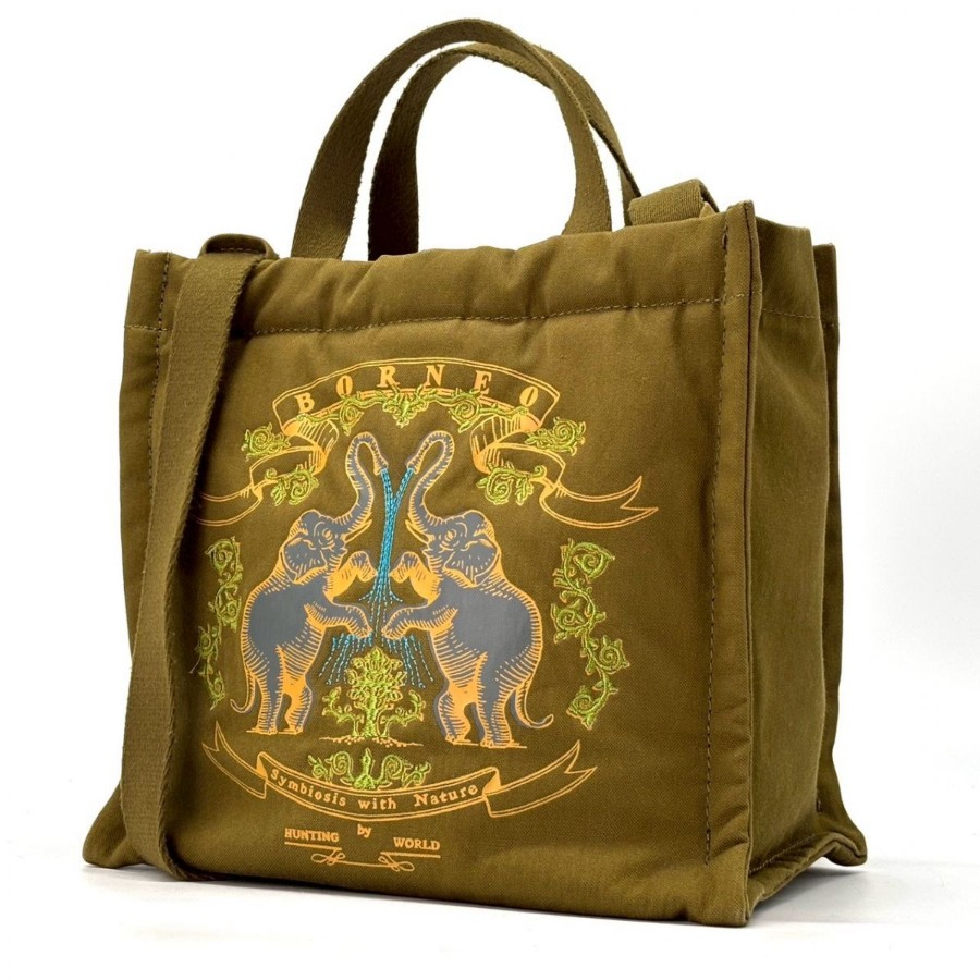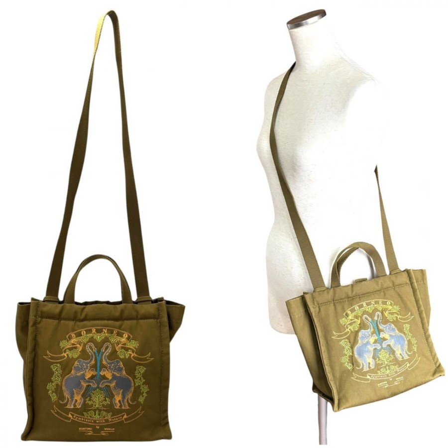 【商品説明】・自然の力強さを描いたボルネオモチーフが印象的。肩掛けと手持ちを切り替えられる2WAY仕様で、街歩きから週末のリラックススタイルまで自在に馴染みます。今注目のサステナブル志向やアウトドアミックスにも調和し、装いに奥行きを添える一品です。