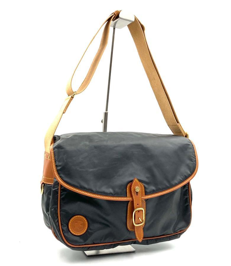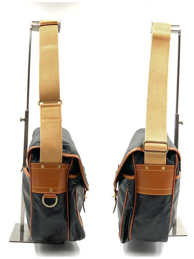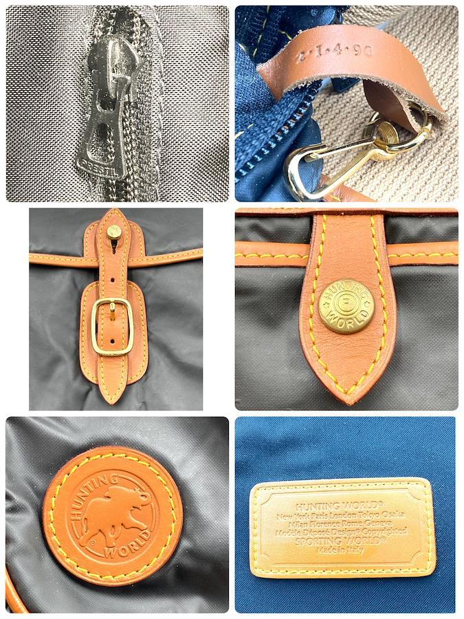 ■商品概要Hunting World ハンティングワールドバチュークロス×レザーショルダーバッグ メッセンジャーバッグクロスボディ 斜めがけグリーン×ライトブラウンイタリア製刻印ありゴールド金具