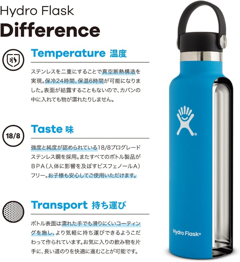 Hydro Flaskのフレックスシップボトルは、優れた機能性とデザイン性を兼ね備えた人気のステンレスボトルです。通勤・通学はもちろん、アウトドアやスポーツシーンでも幅広く活躍します。