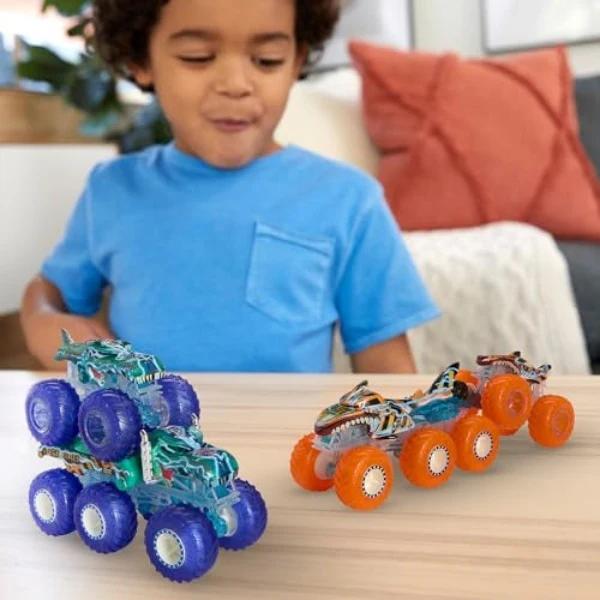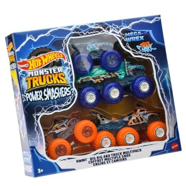 ホットウィール(Hot Wheels) モンスタートラック トランスポーターセット 乗り物おもちゃ ミニカー 4台 3歳から ブルー・オレンジ HYJ29