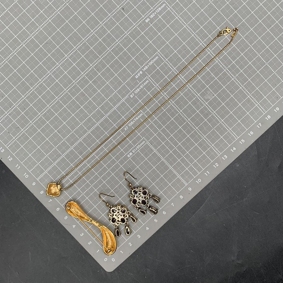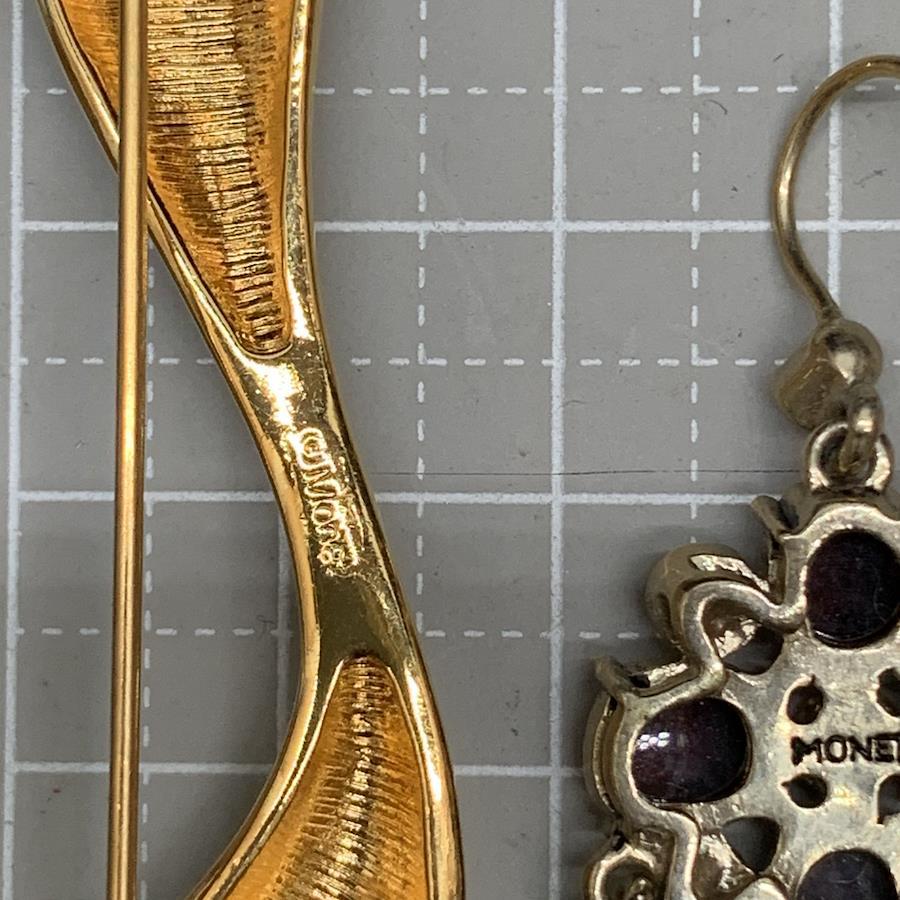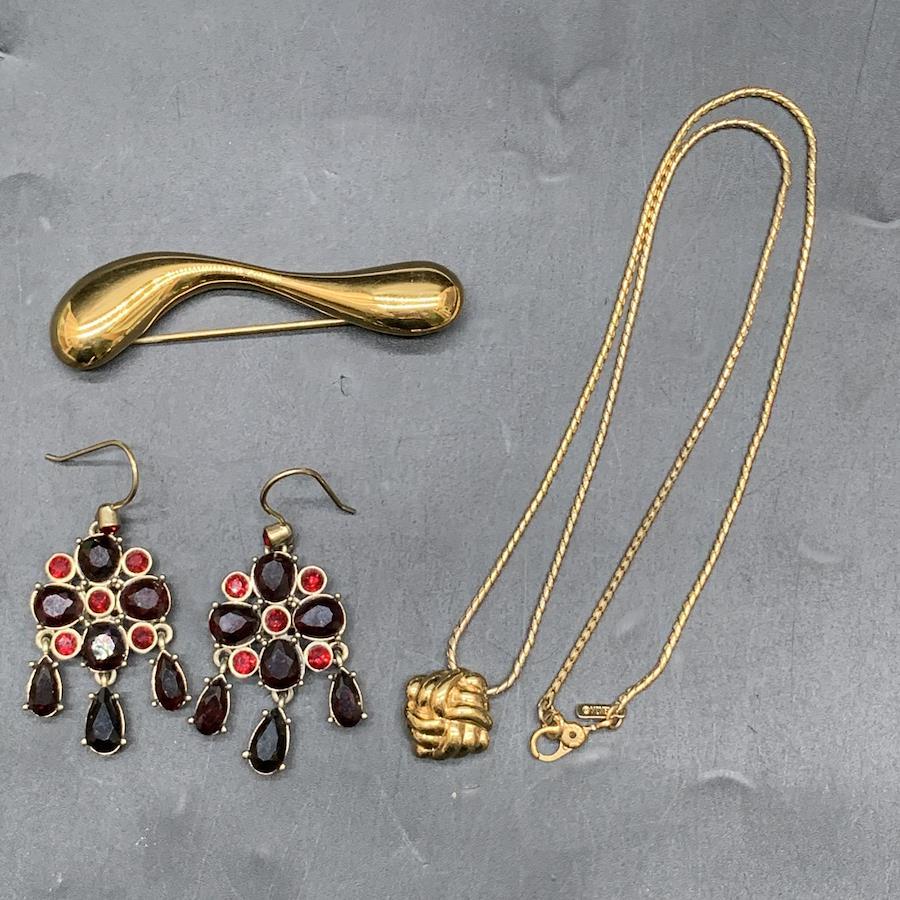 I334 Monet Vintage Accessories Set of 3: Women's Necklace, Earrings, and Brooch in Gold