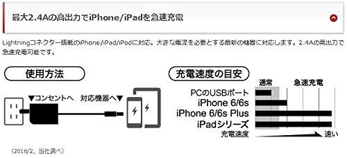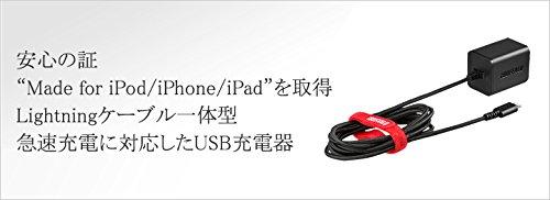 通常1-5営業日で発送:「Made for iPod/iPhone/iPad」を取得した、Lightningコネクター採用のUSB充電器。Lightningケーブル一体型で追加ケーブル不要。断線に強いファブリックケーブル&コネクターの付け根を保護するラバーブッシュ。