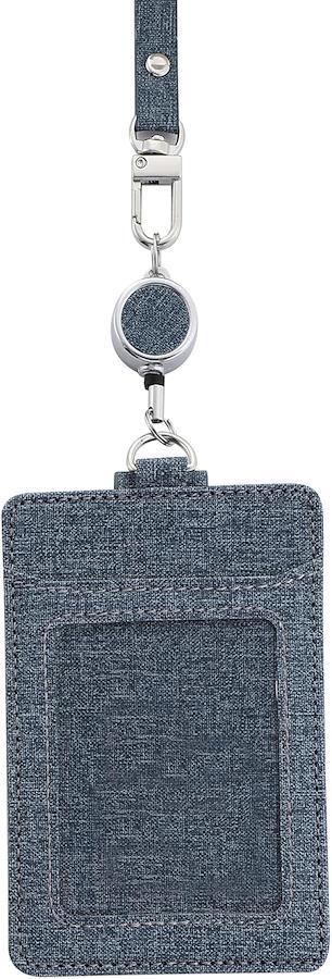 35cm Denim-Style ID Card Holder with Reel, Pass Case, Neck Strap, Employee ID Case, Double-Sided Storage, Holds 2 Cards, Compatible with IC Cards, Perfect for Commuting, School, or Business
