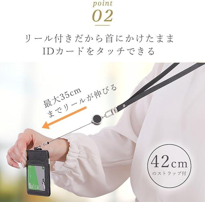 35cmまで伸びるリールストラップで、立ったままでもスムーズにICカードの読み取りが可能です。