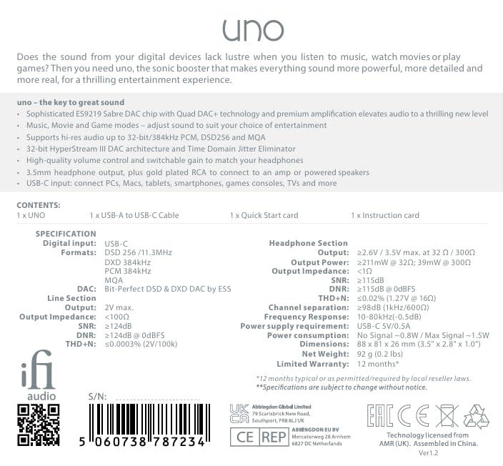 3営業日以内に発送≪新品未開封品≫:iFi audio Uno PCM384/DSD256対応小型USB-DAC 【国内正規品】